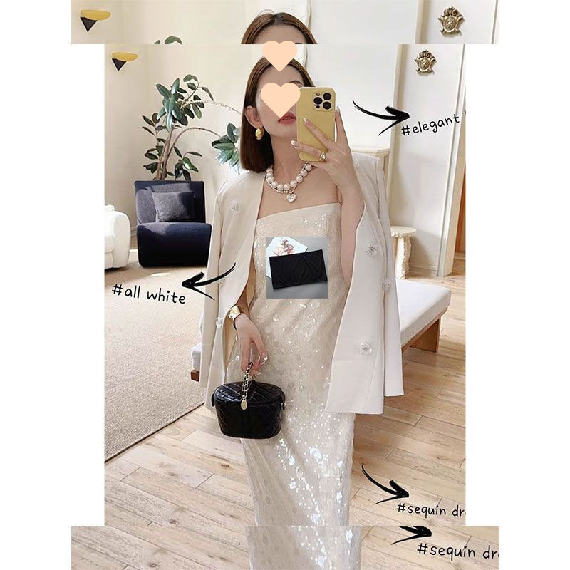 프렌치 니치 서스펜더 스팽글 드레스 슈트 드레스 고급 질감 파티 기질 생일 파티 미디 스커트스토어 가기