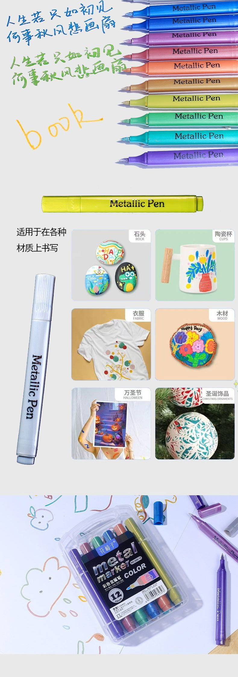 12 색 금속 펜 마커 소프트 헤드 마커 방수 속건성 비 컬러 핸드북 그림 diy