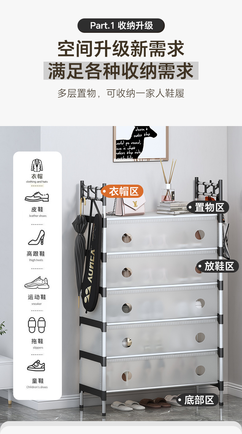 기숙사 간이 방진 일체형 신발장 가정용 플라스틱 출입구 임대 수납장 대용량 조합 간이 신발장스토어 가기