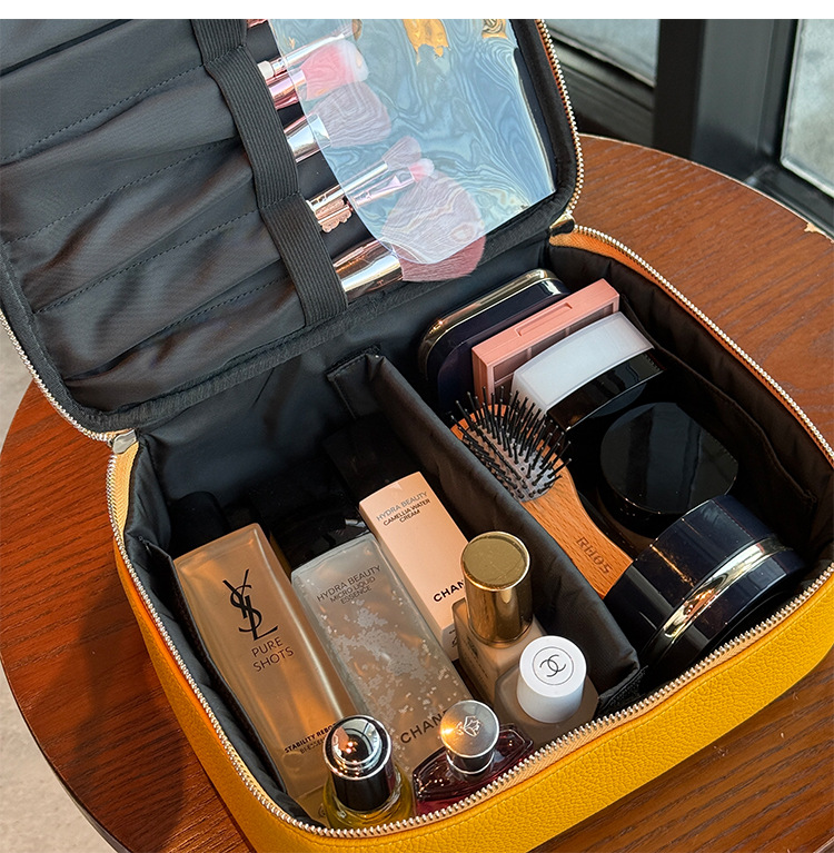 정품 가죽 초대형 용량 패션 비스킷 화장품 가방 휴대용 다기능 세면 용품 가방 간단한 여행 화장품 보관스토어 가기