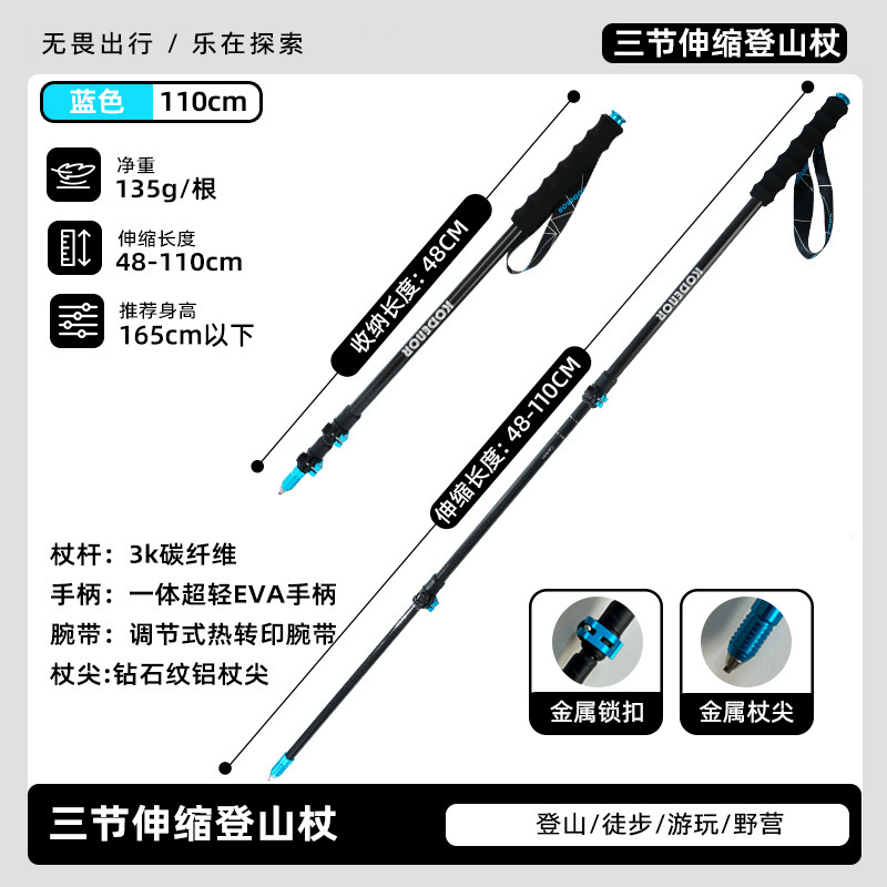 • 3K 카본 텔레스코픽 스틱 [스카이블루] - 185cm 이하 사용 권장