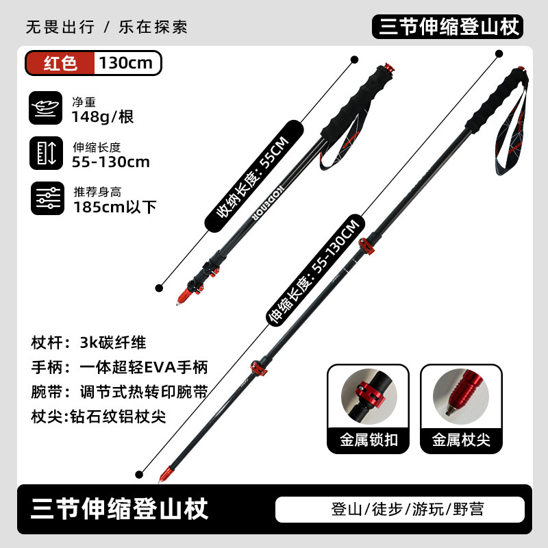 • 3K 카본 - 텔레스코픽 스틱 [버건디 레드] - 185cm 이하 사용 권장