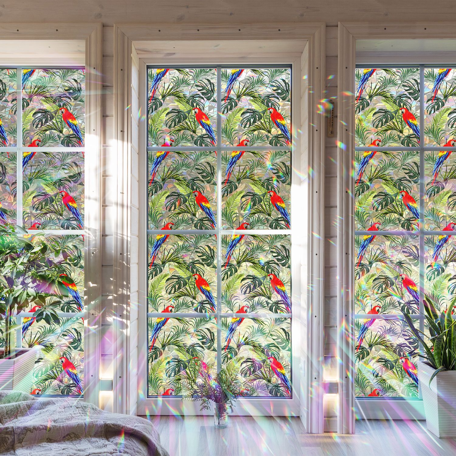 Funlife 레이저 앵무새 팜 리프 창 스티커 정전기 흡착 롤 접착제가없는 흡착 장식 필름 SE1367스토어 가기