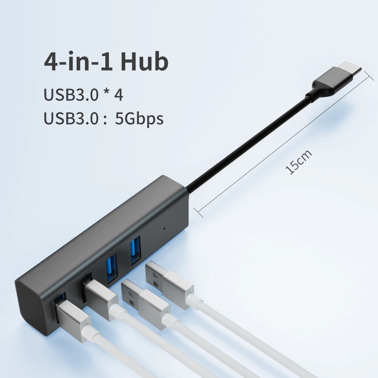 USB3.0 고속 허브 허브 1-4 4포트 노트북 하드 드라이브 도킹 스테이션 USB 분배기