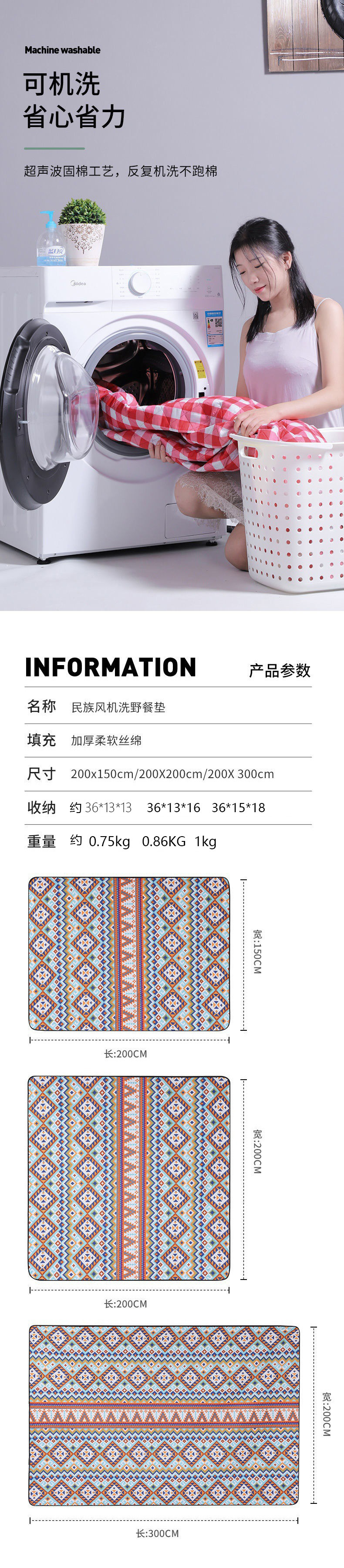 초음파 피크닉 매트 두꺼운 방수 및 방습 매트 피크닉 천 비치 매트 기계 세탁 가능 야외 텐트 캠핑 매트스토어 가기