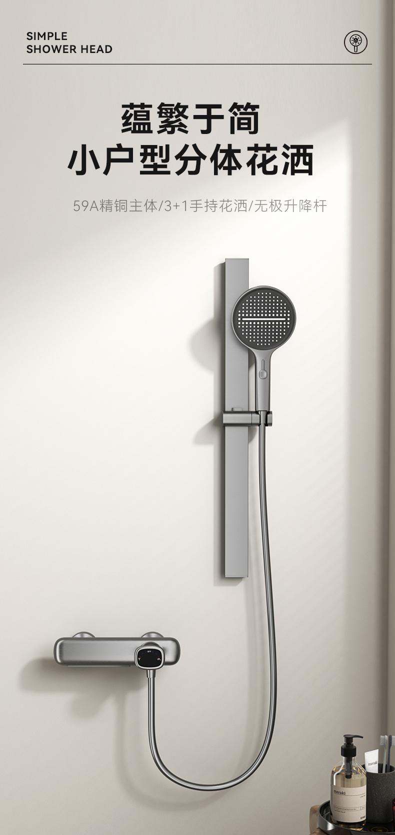 크림 스타일 소형 순수 구리 탑리스 스프레이 간이 샤워 키트 간이 가압 항온 냉온수 크로스보더