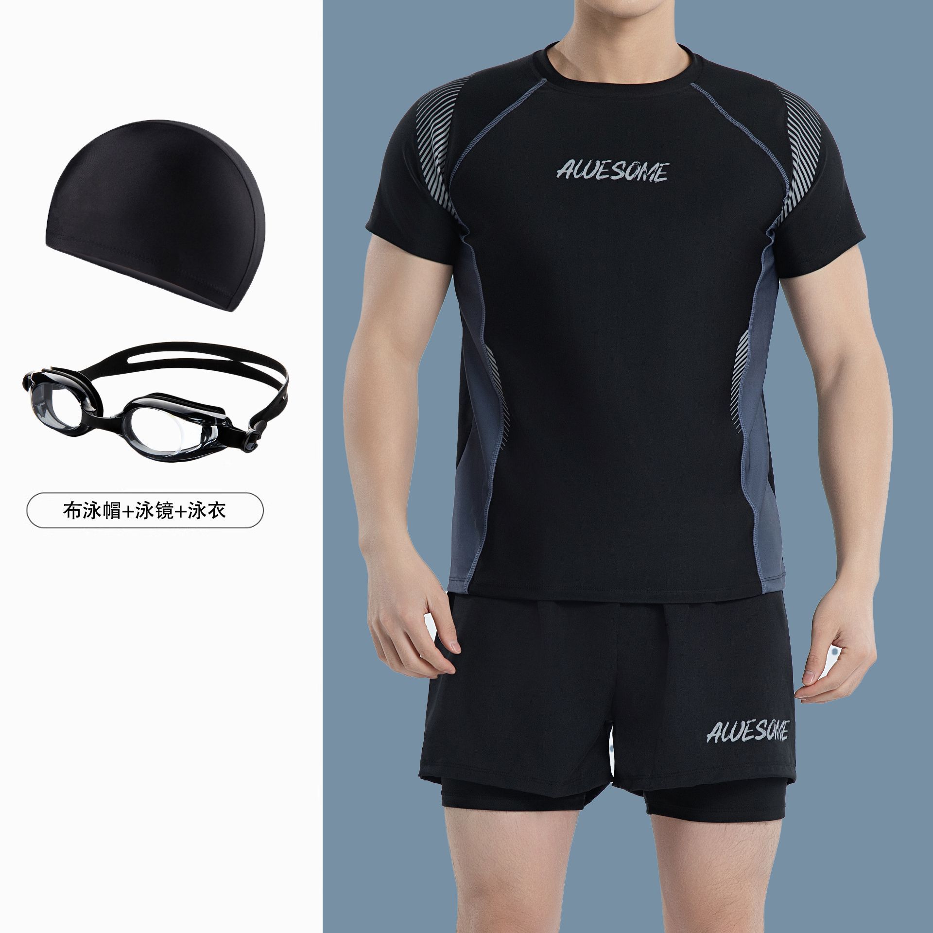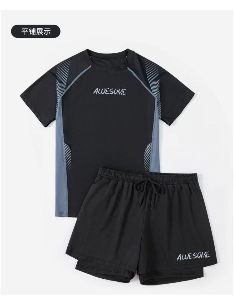 남성용 수영복 긴팔 소년 상의 수영복 수영복 자외선 차단 서핑 슈트 청소년 플러스 사이즈 수영복 반팔