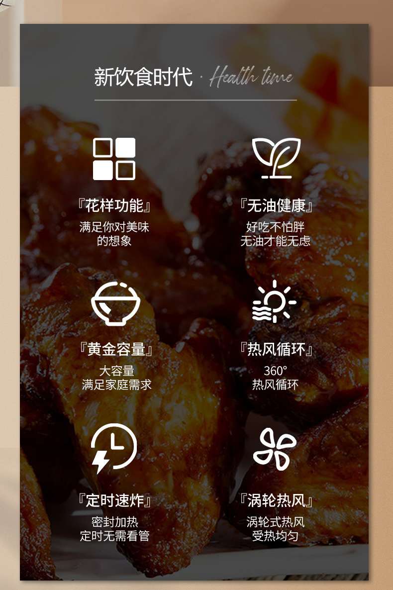 Camel 에어 프라이어 가정용 다기능 에어 프라이어 대용량 오일 프리 스마트 전기 오븐 감자 튀김 기계