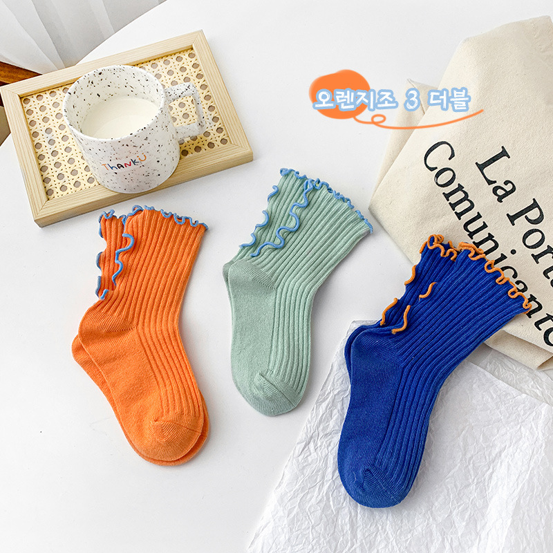 가을 겨울 신작 어린이 양말, 줄무늬 발 뒤꿈치 양말, 소년 소녀 귀 양말, 단색 종아리 양말 도매