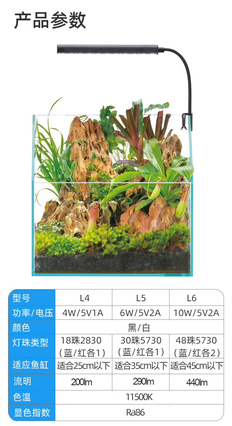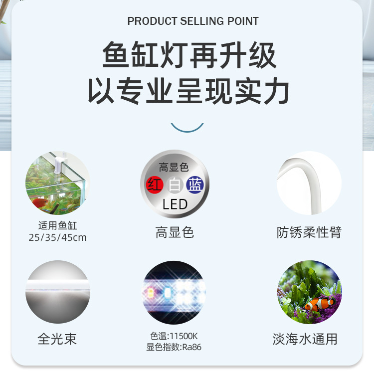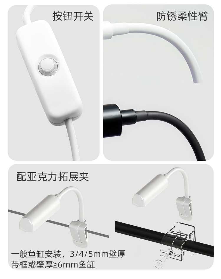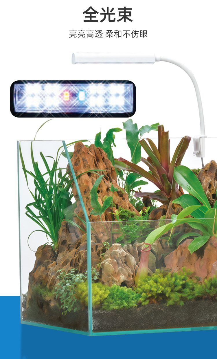풀 스펙트럼 수조 조명, 대형, 중형 및 소형 수족관 조명, 수초 탱크 조명, 담수 및 해수 범용 USB 수조 클립 조명
