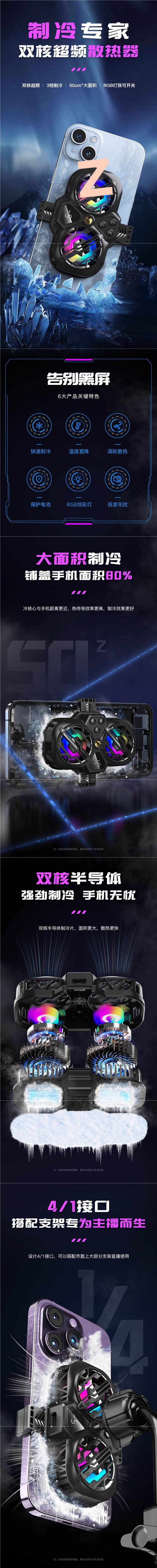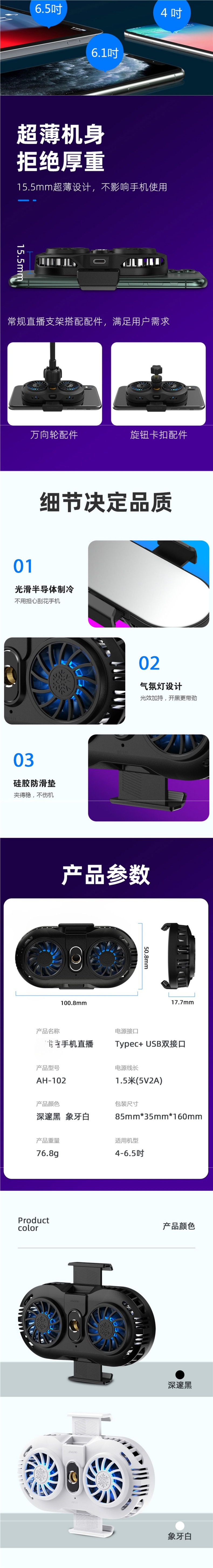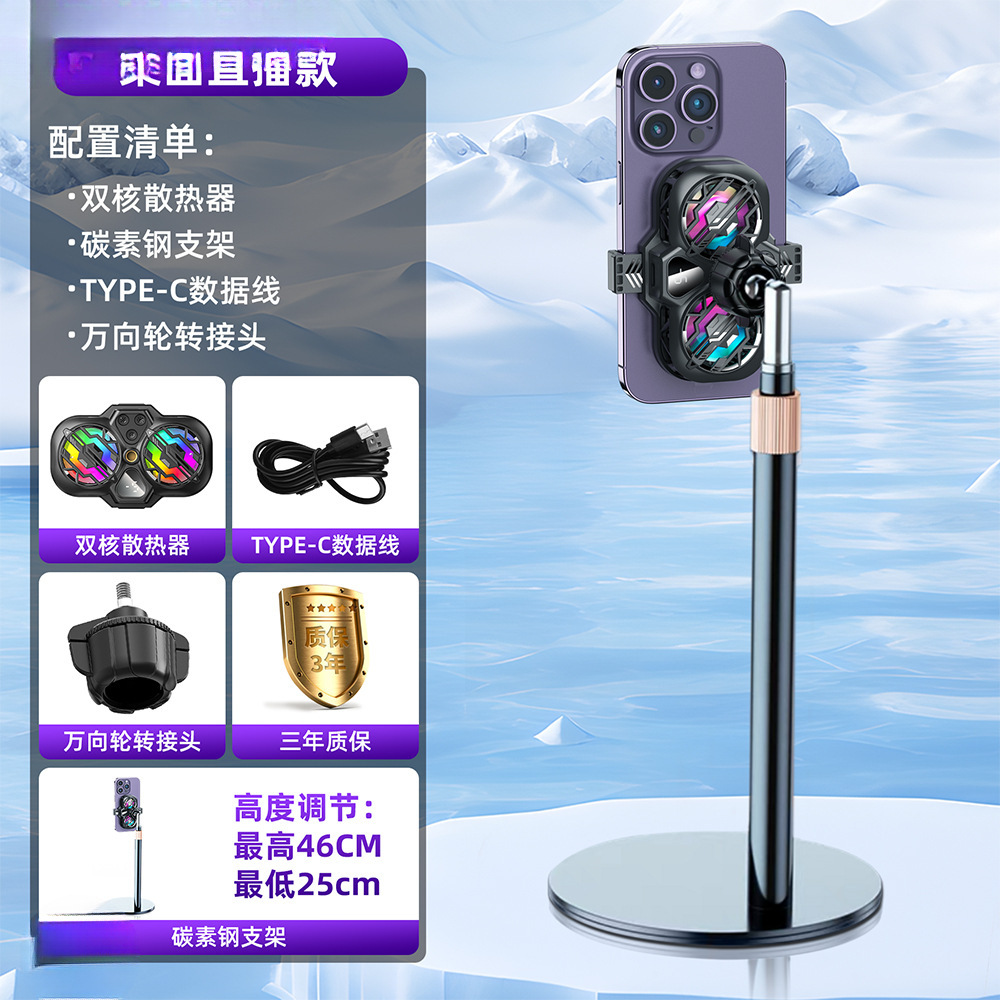 휴대폰 라디에이터 냉각 반도체 냉각 음소거 게임용 수냉식 후면 클립 팬 충전 기능이 있는 라이브 방송 스탠드