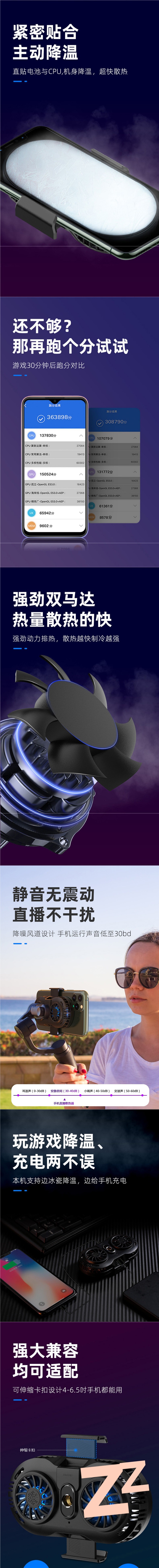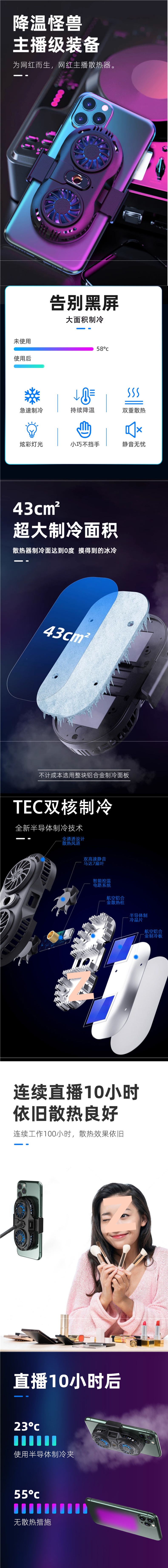 휴대폰 라디에이터 냉각 반도체 냉각 음소거 게임용 수냉식 후면 클립 팬 충전 기능이 있는 라이브 방송 스탠드스토어 가기
