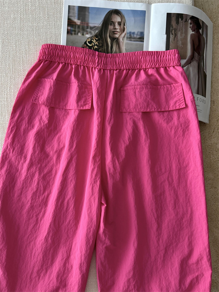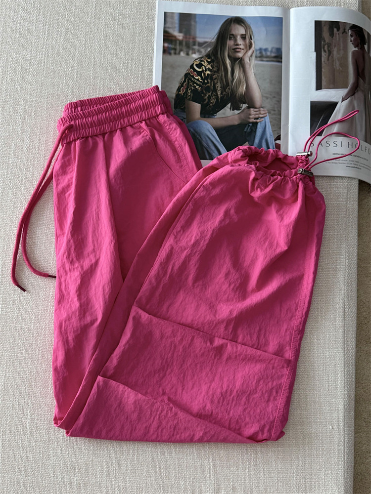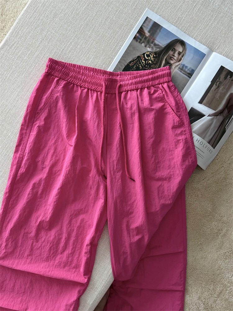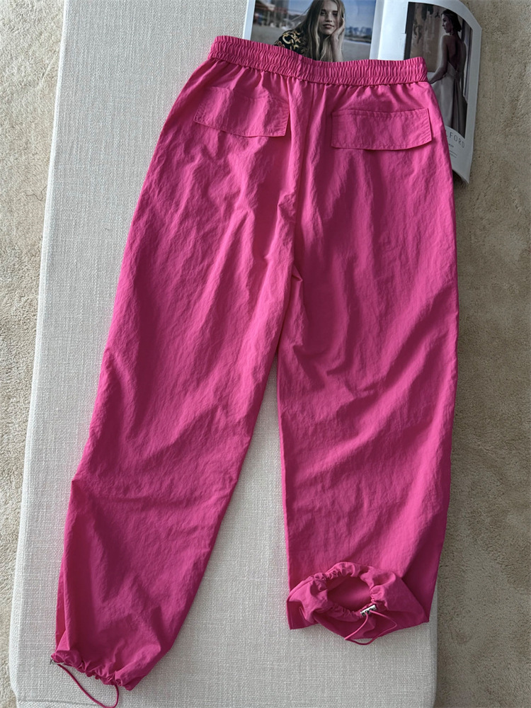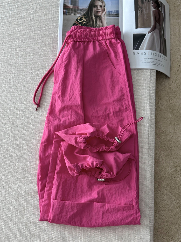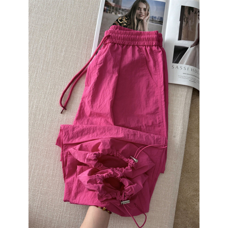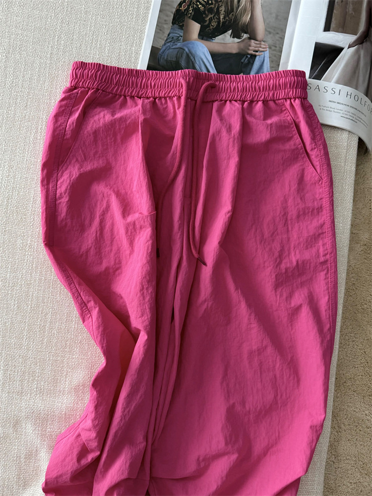 로즈 핑크 캐주얼 작업복 여성용 속건성 바지 여름 2025 여성용 새로운 얇은 공수 바지스토어 가기