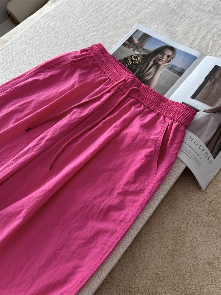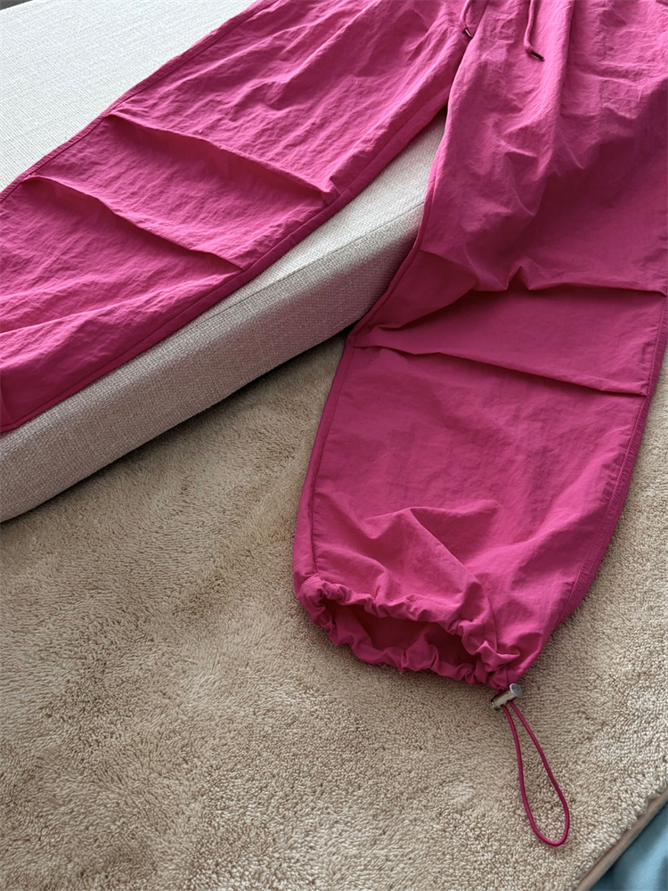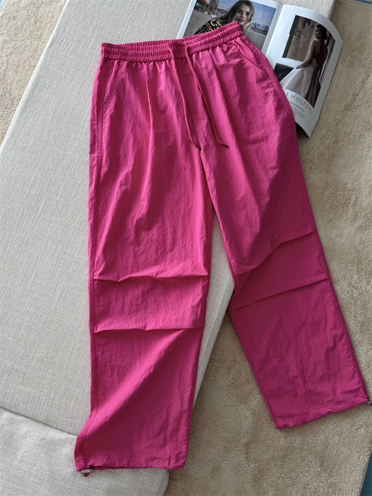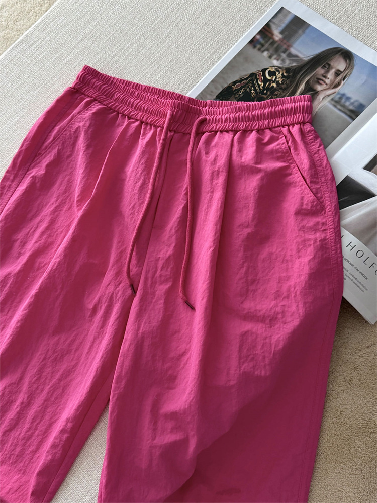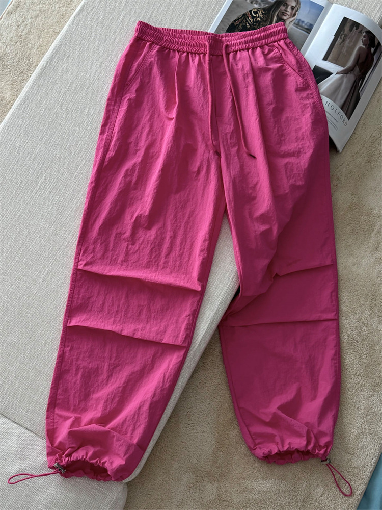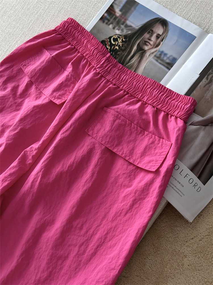 로즈 핑크 캐주얼 작업복 여성용 속건성 바지 여름 2025 여성용 새로운 얇은 공수 바지스토어 가기