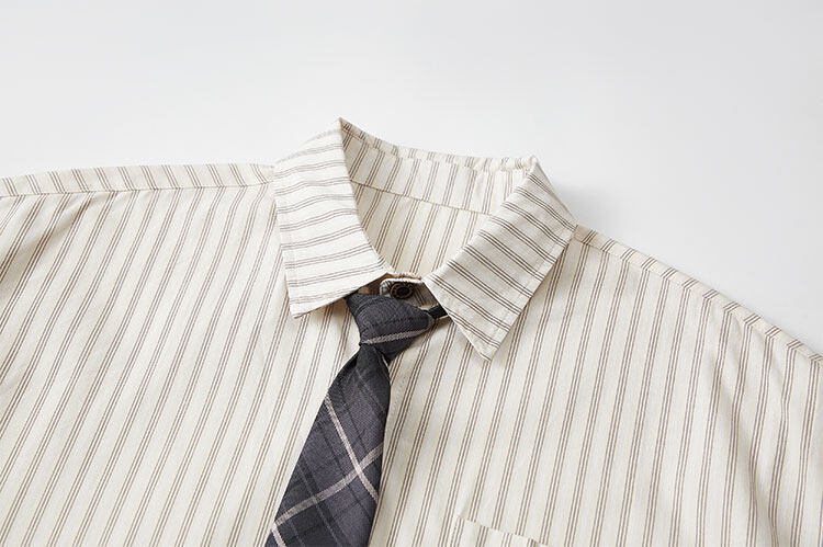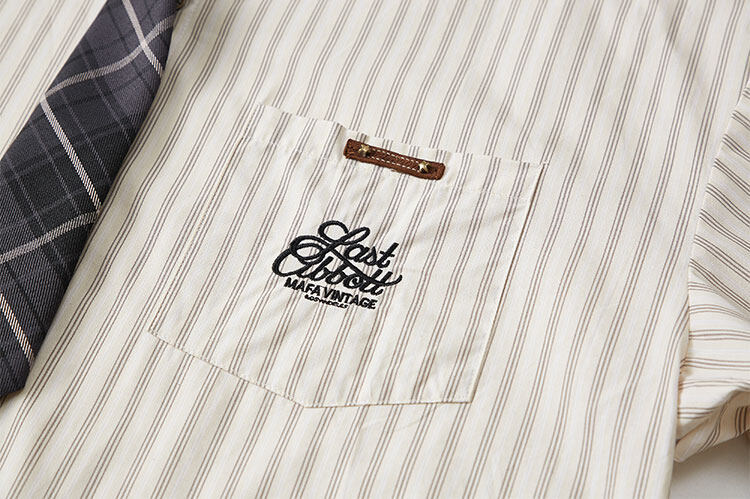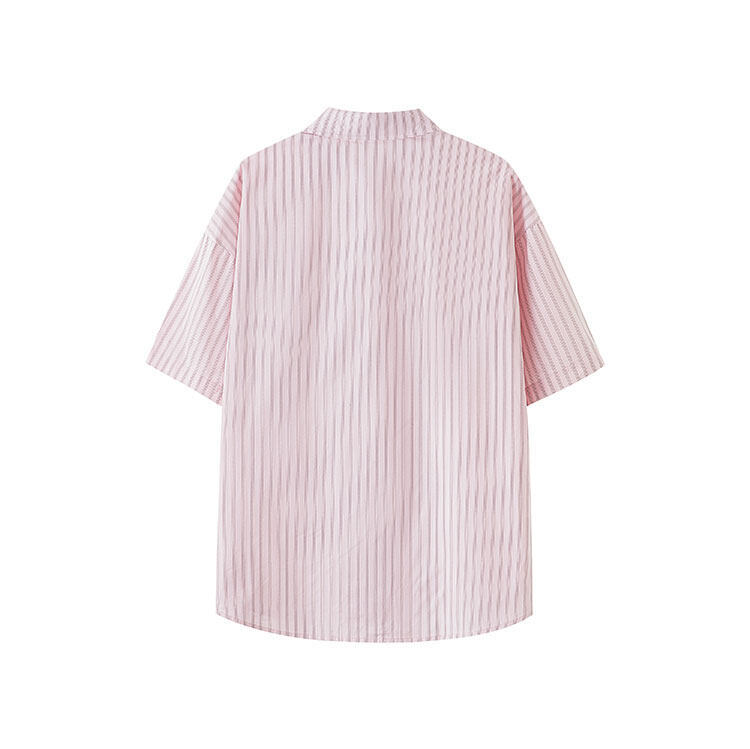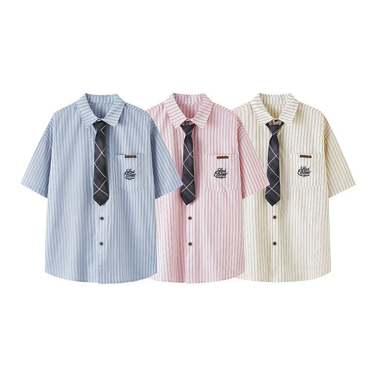 트렌디한 브랜드 컬리지 스타일 핑크 스트라이프 반팔 셔츠 남성 여름 캐주얼 다용도