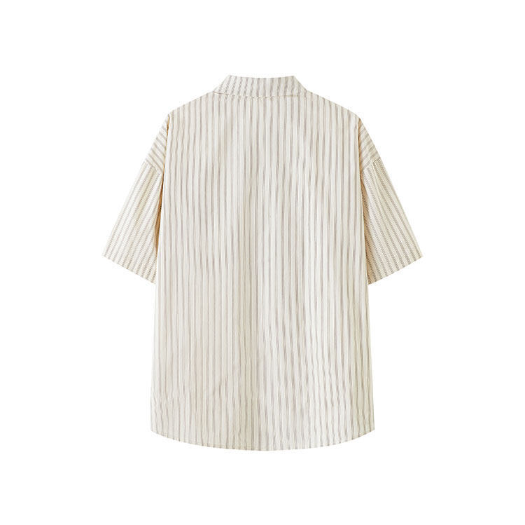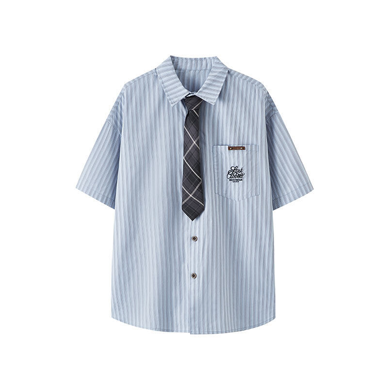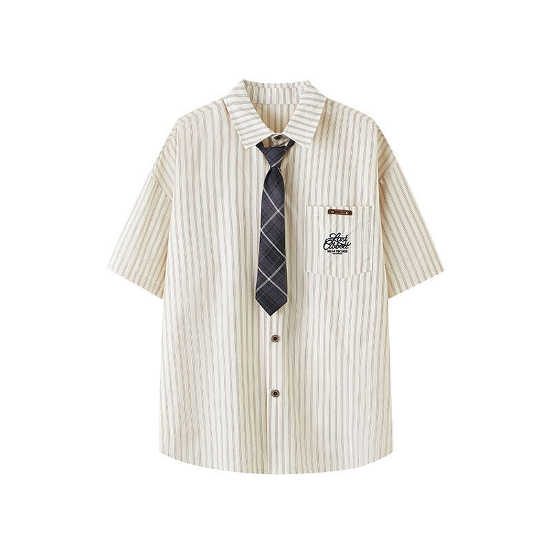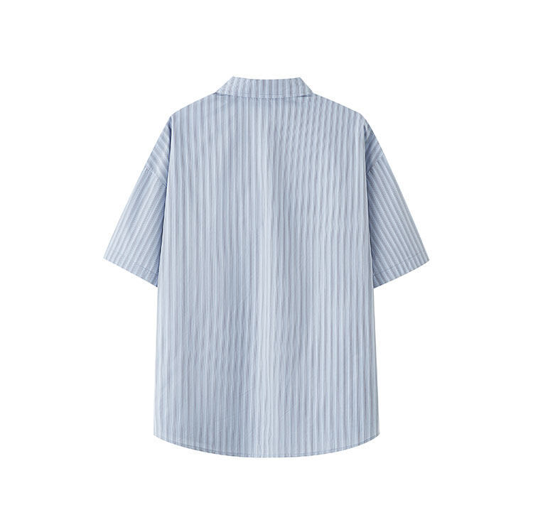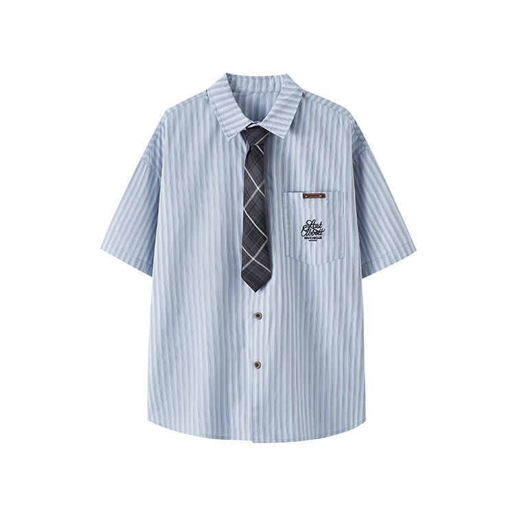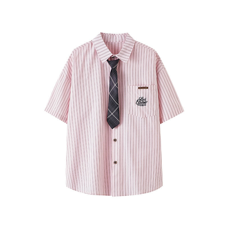 트렌디한 브랜드 컬리지 스타일 핑크 스트라이프 반팔 셔츠 남성 여름 캐주얼 다용도스토어 가기