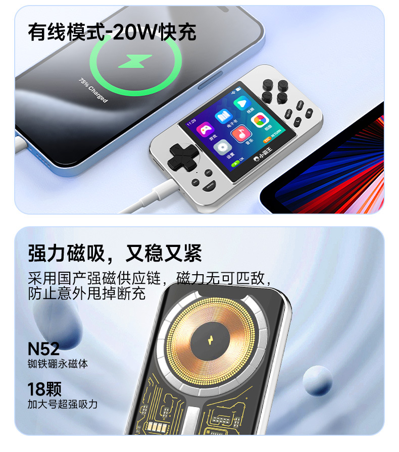 Xiaobawang 자기 게임 콘솔 보조베터리 2-in-one 5000mAh 휴대용 무선 고속 충전 보조베터리 선물스토어 가기