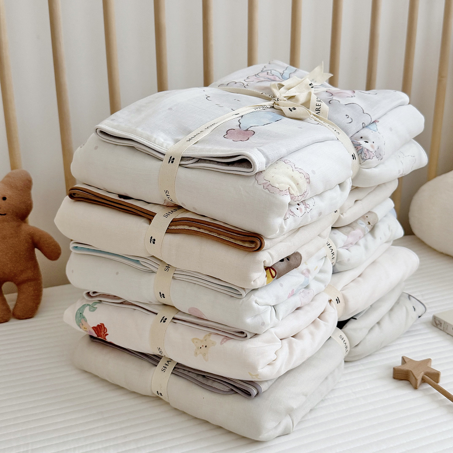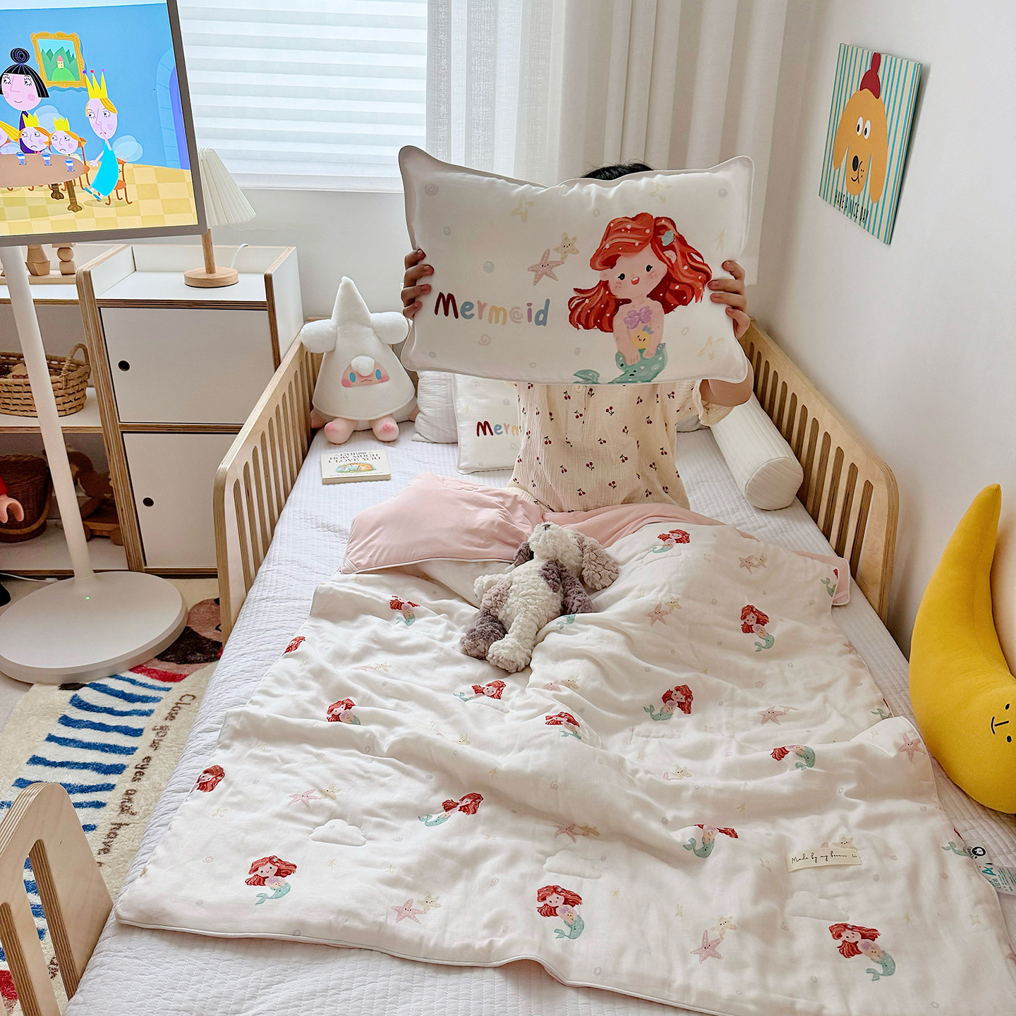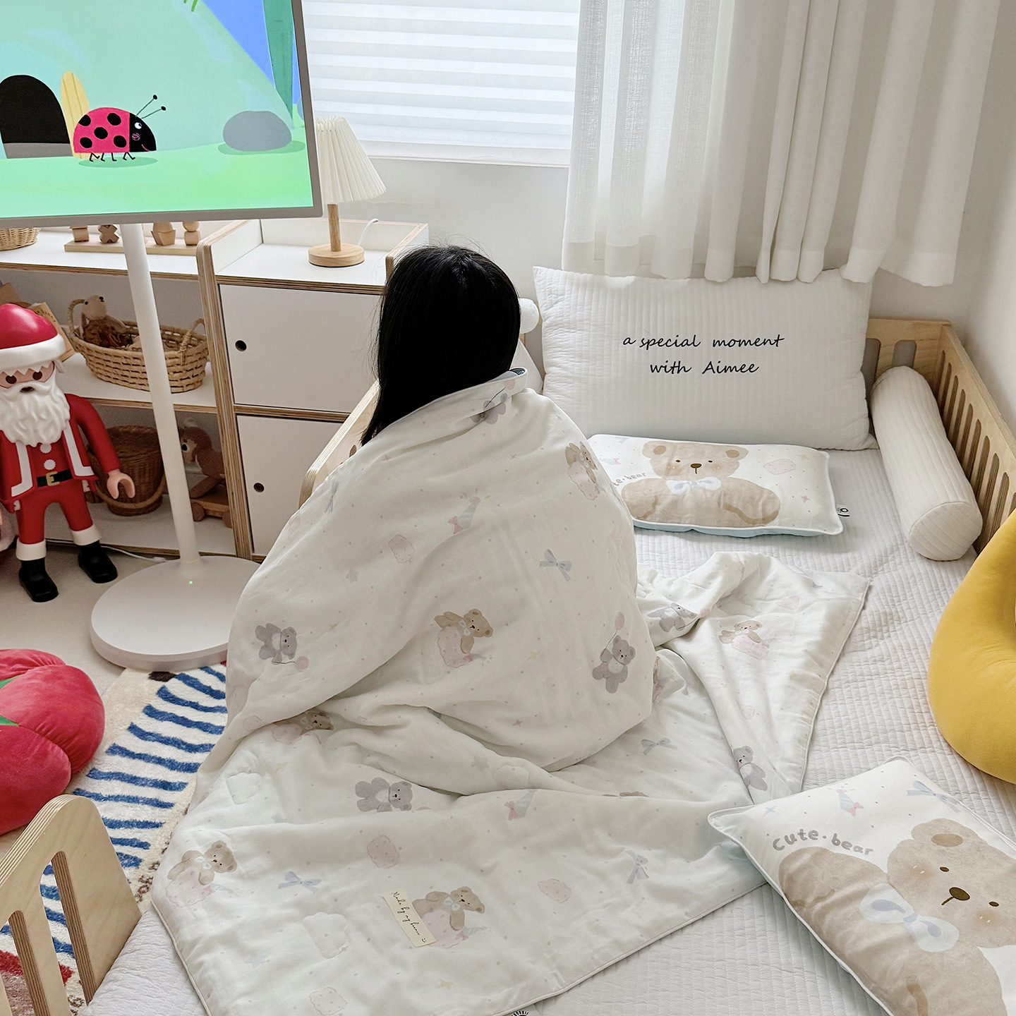 Ins 어린이 양면 여름 이불 면 더블 레이어 원사 나일론 스판덱스 시원한 에어컨 이불 유치원 낮잠 얇은 이불스토어 가기
