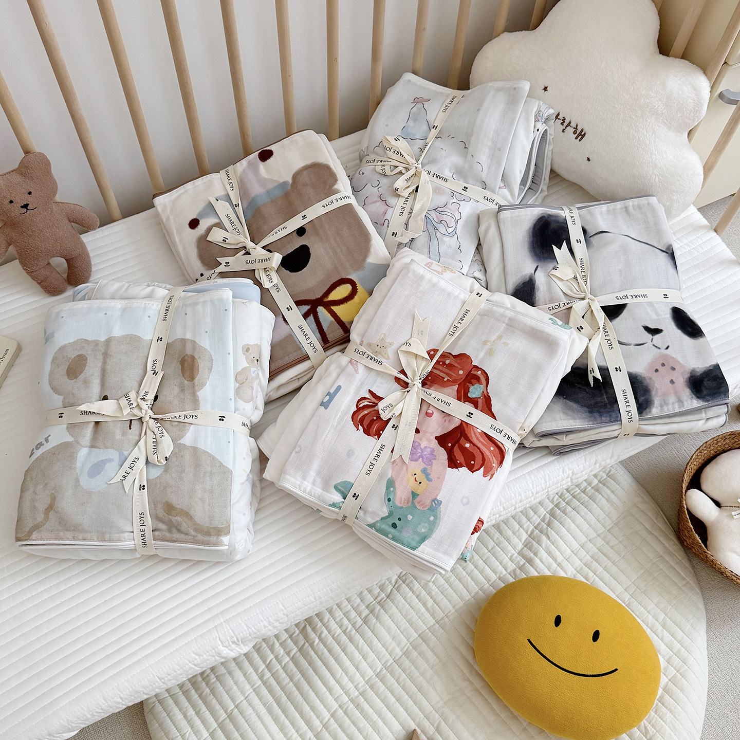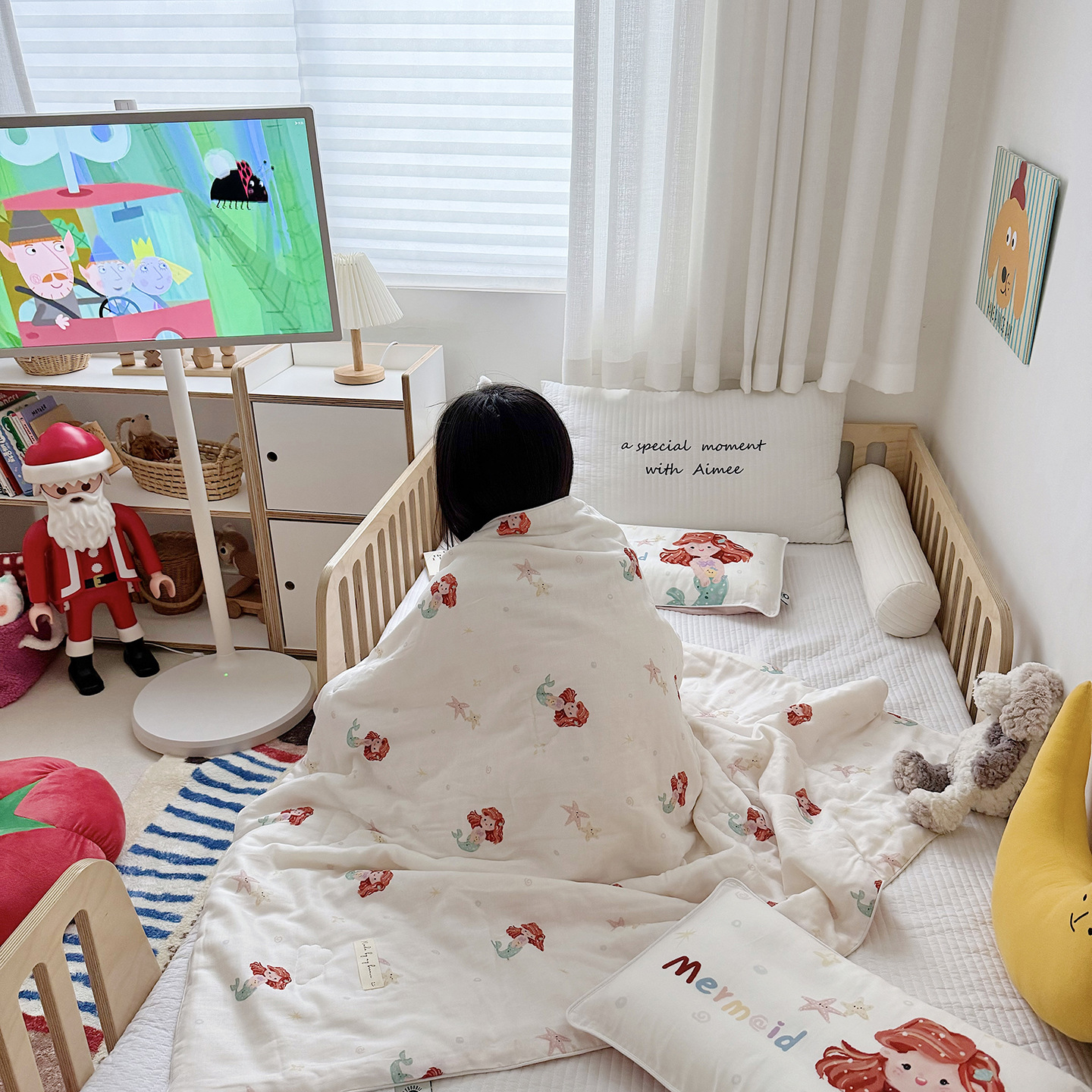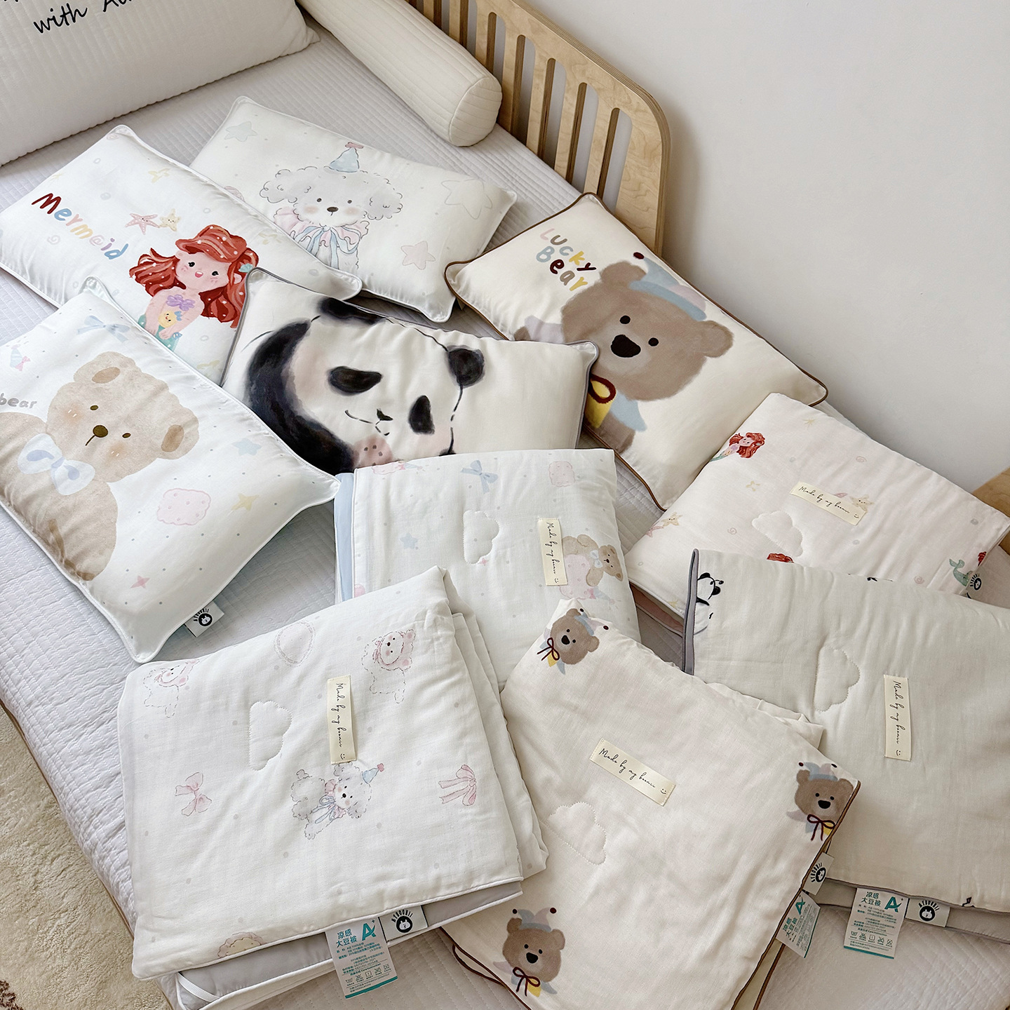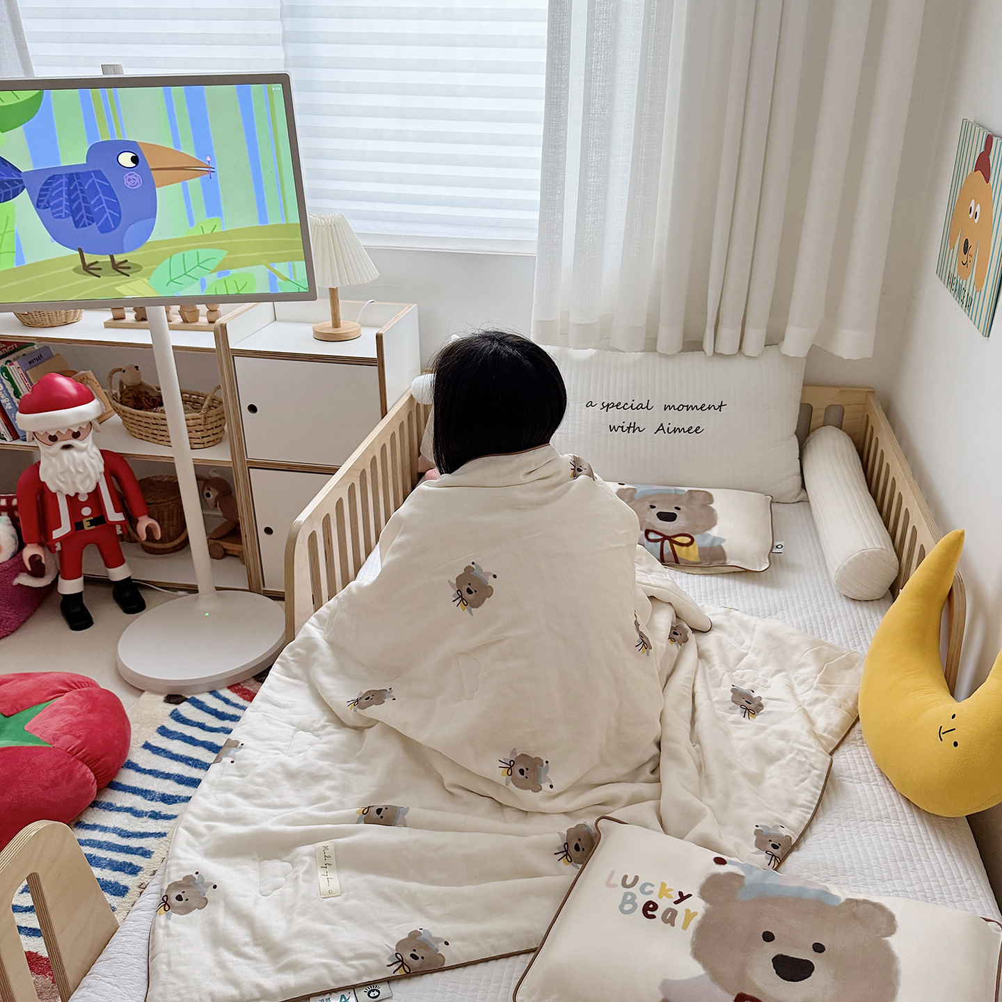 Ins 어린이 양면 여름 이불 면 더블 레이어 원사 나일론 스판덱스 시원한 에어컨 이불 유치원 낮잠 얇은 이불스토어 가기