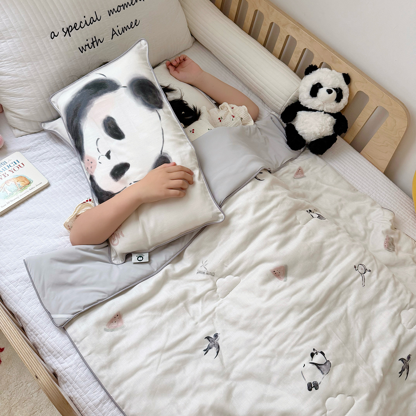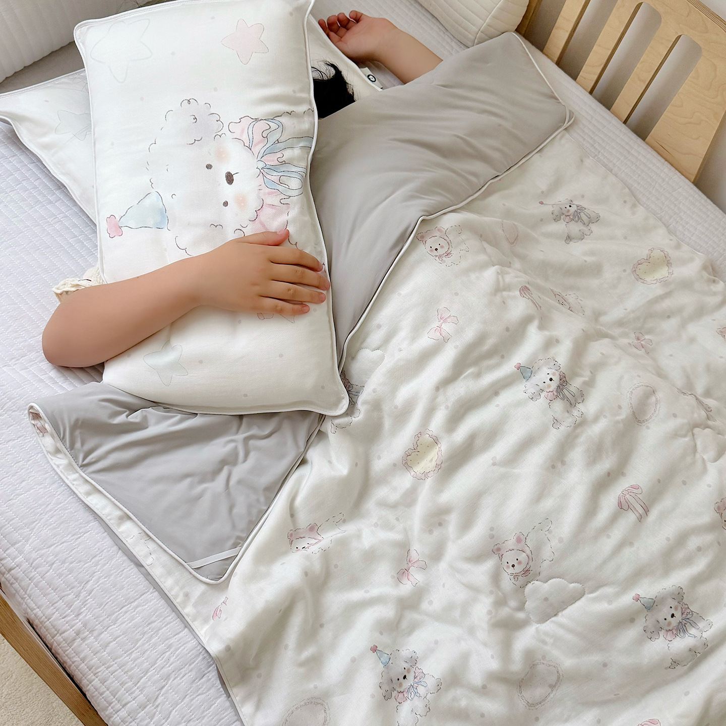 Ins 어린이 양면 여름 이불 면 더블 레이어 원사 나일론 스판덱스 시원한 에어컨 이불 유치원 낮잠 얇은 이불