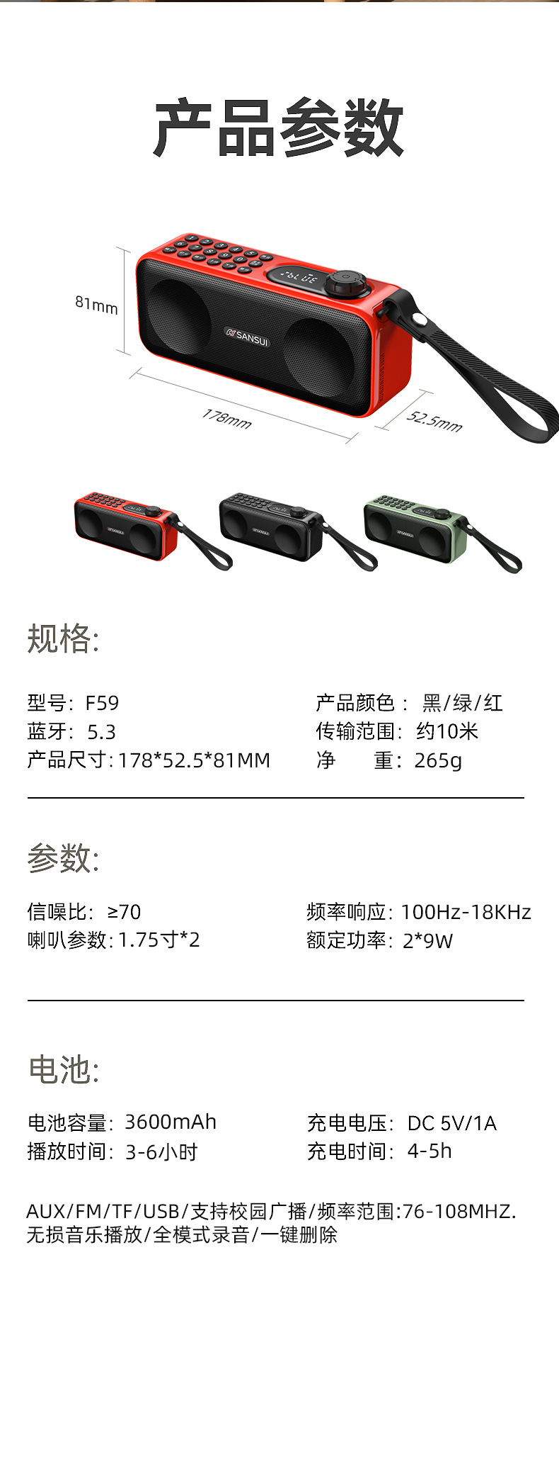 Shanshui F59 블루투스 스피커 휴대용 카드 오디오 서브우퍼 듀얼 스피커는 헤드폰 U 디스크로 연결하여 음악을 재생할 수 있습니다.