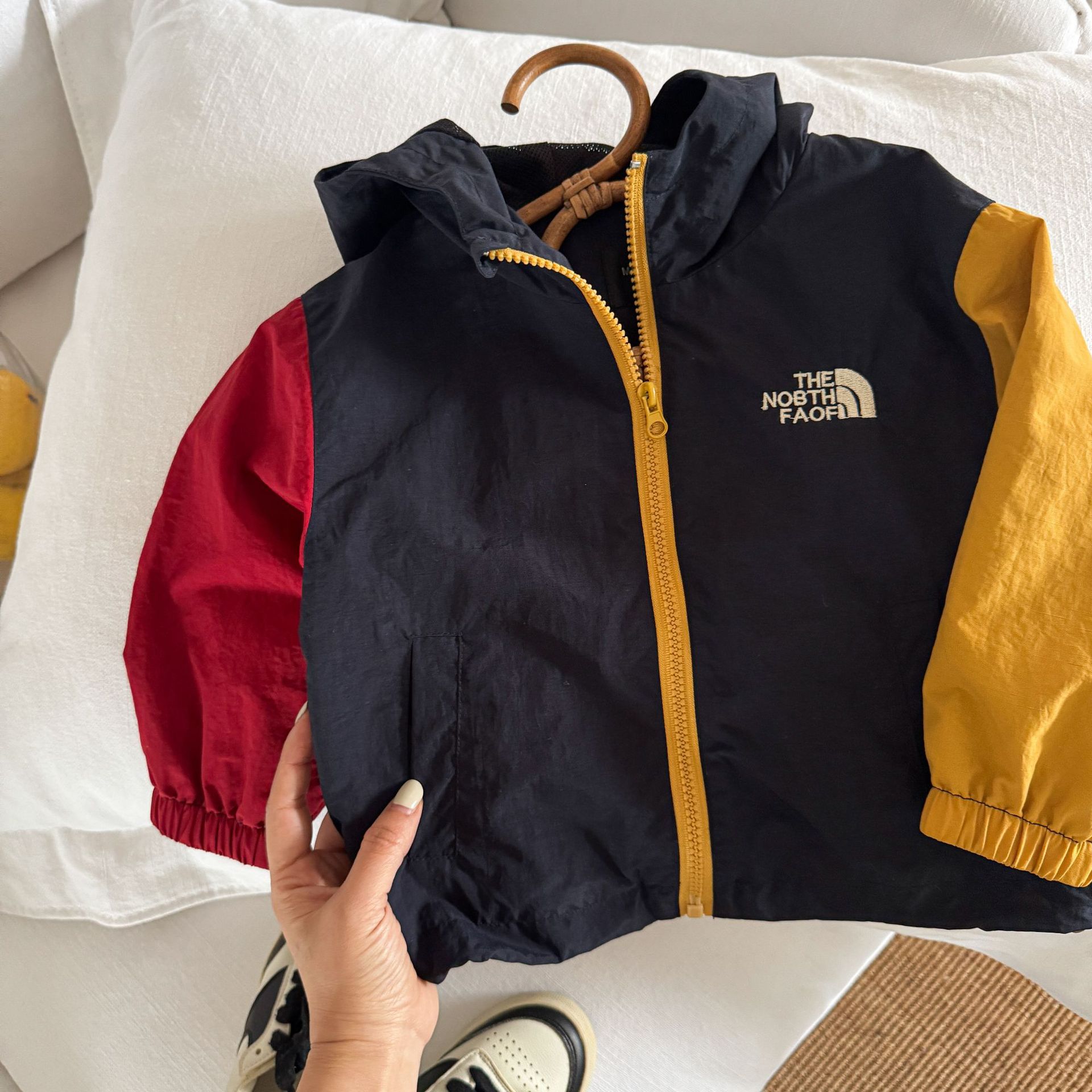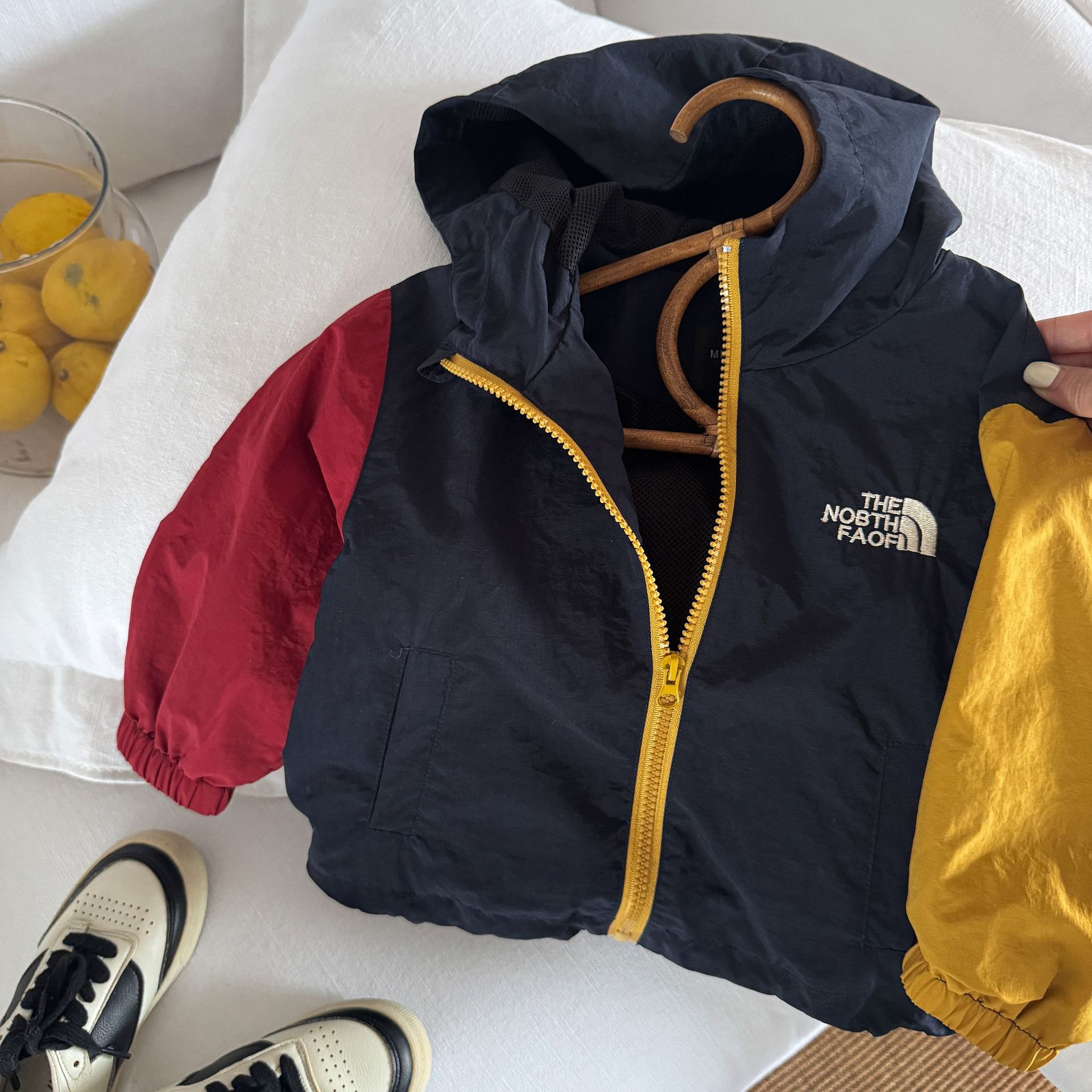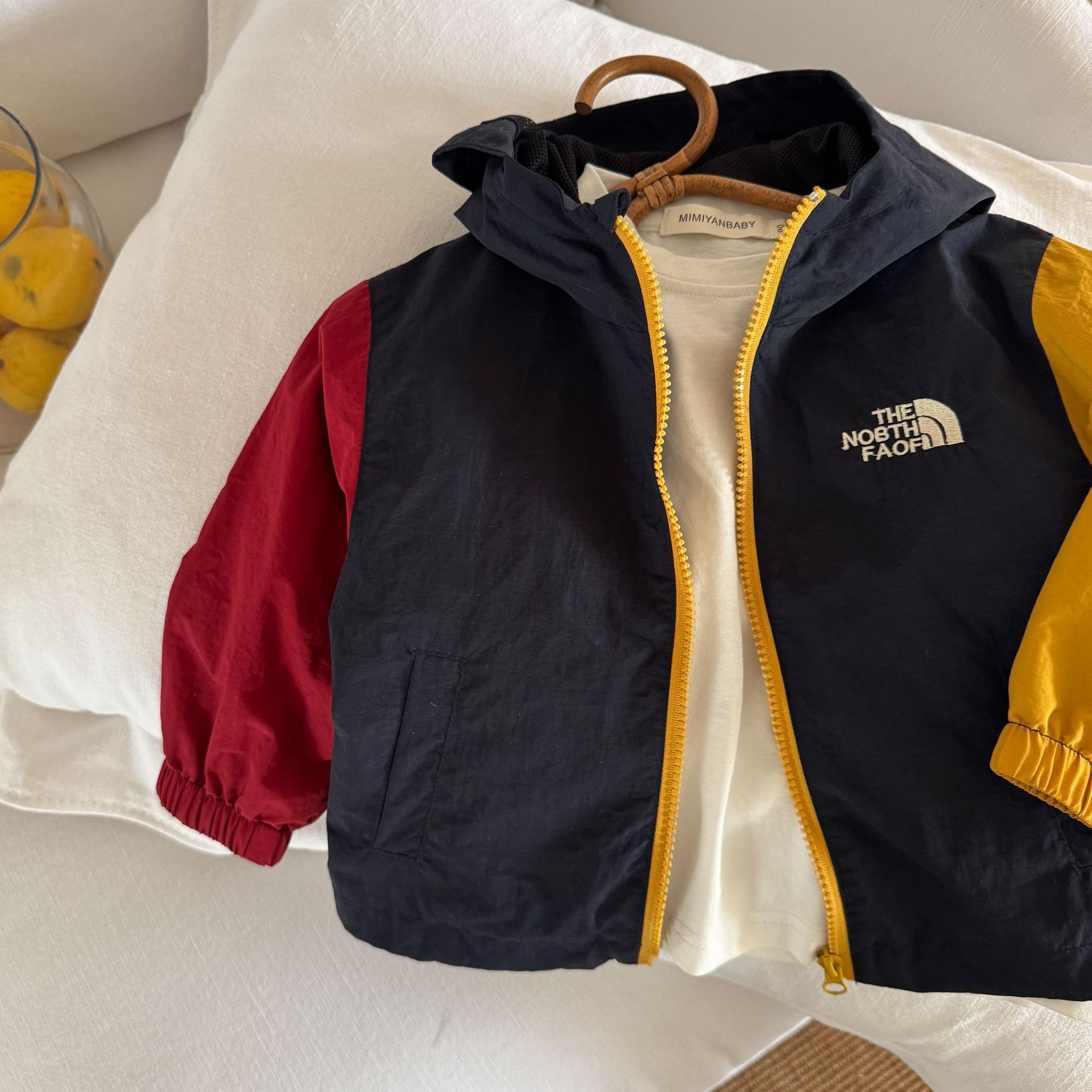 아동용 후드 재킷 2025 가을 한국 스타일 소년과 소녀를위한 새로운 스타일 대비 색상 스플 라이스 베이비 지퍼 재킷