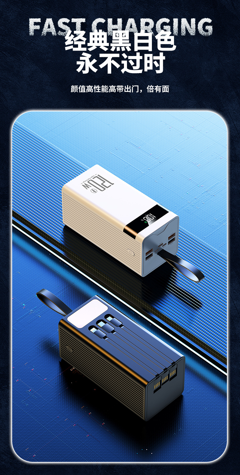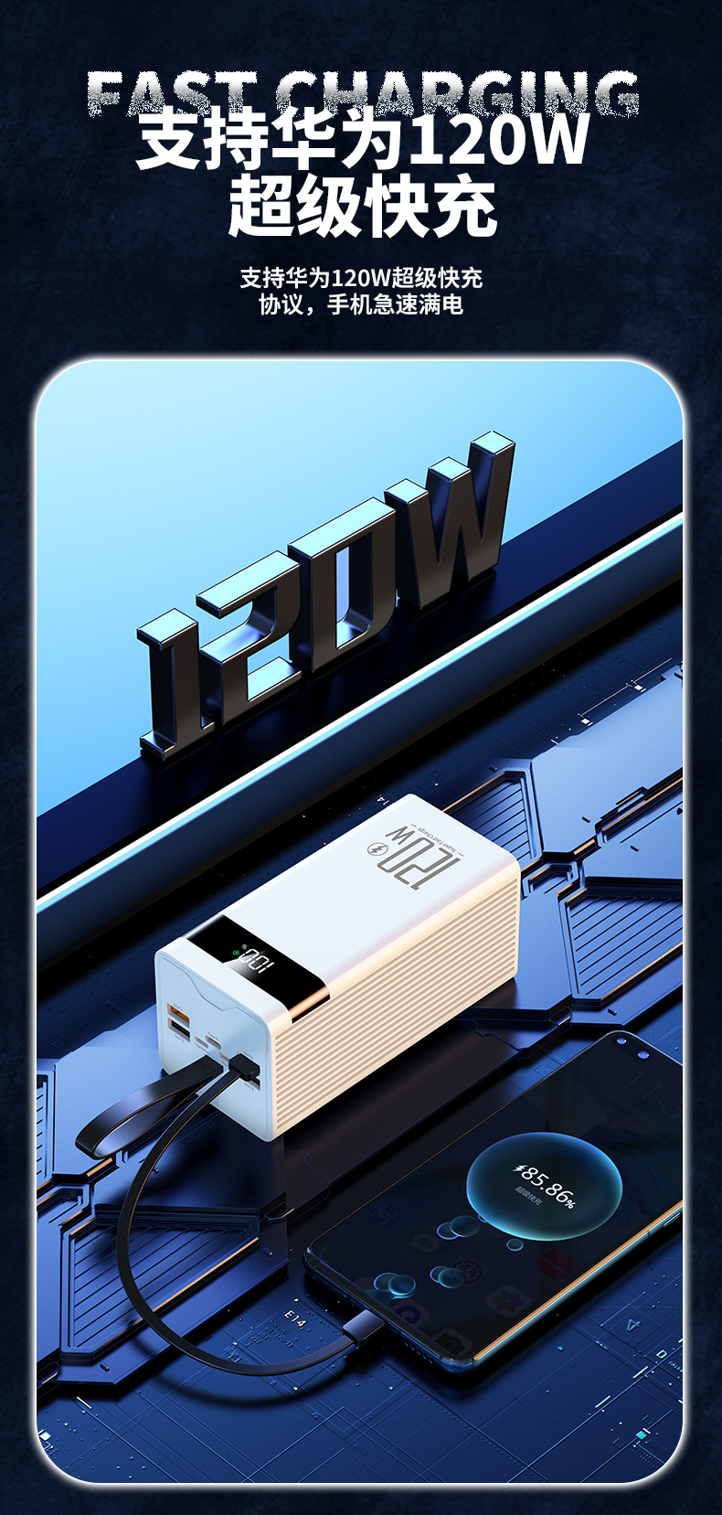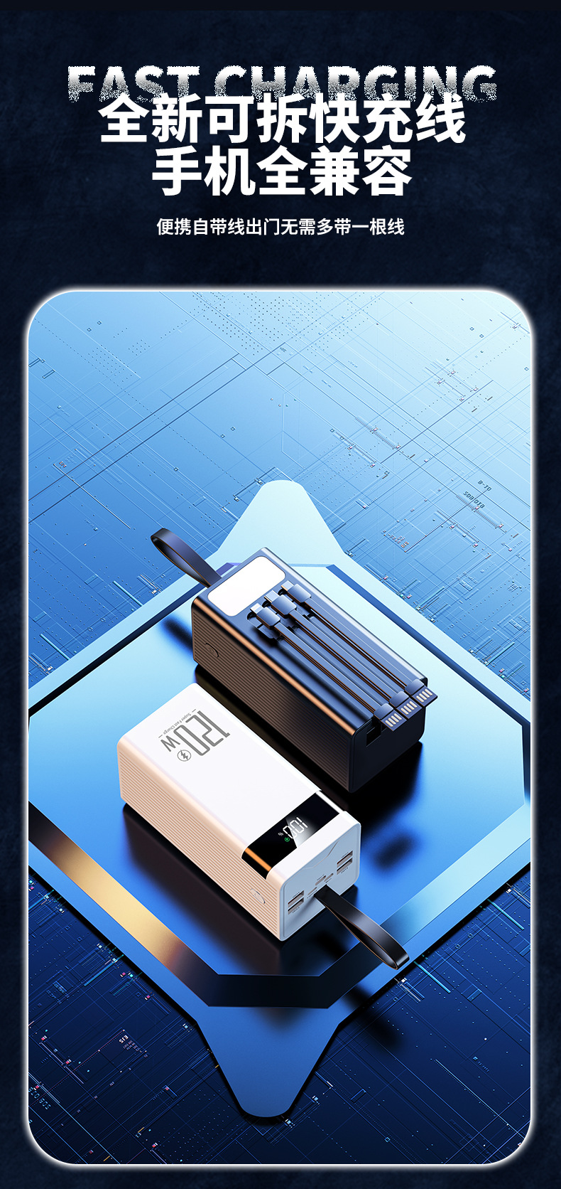 120W 초고속 충전 50000mAh 보조베터리 초대용량 케이블 조명 포함 야외 모바일 전원 공급 장치