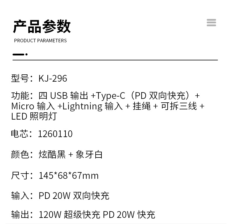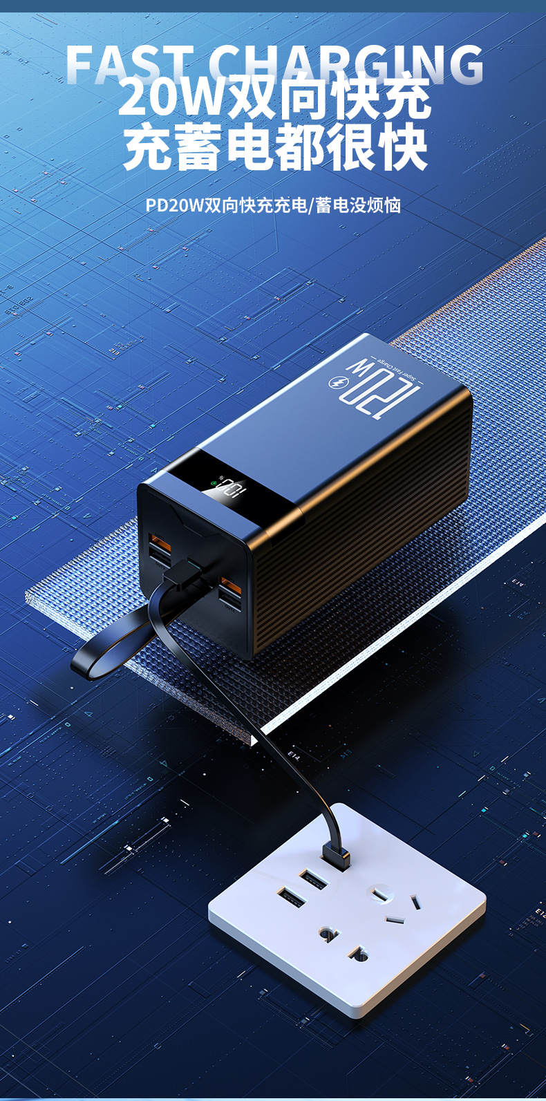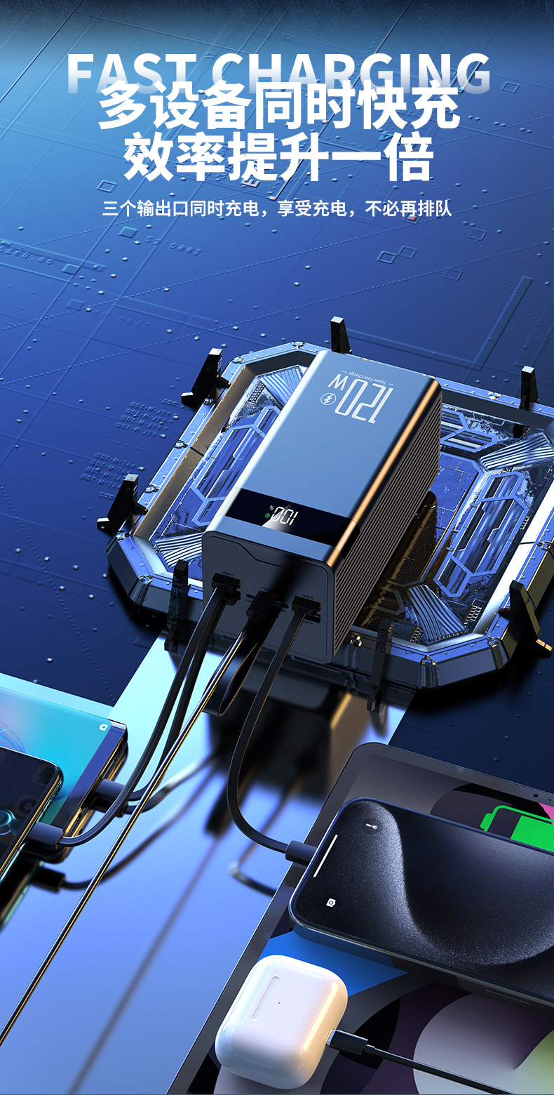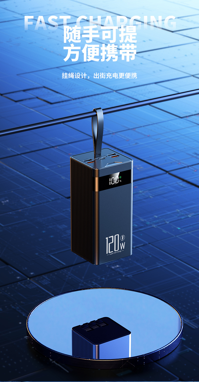 120W 초고속 충전 50000mAh 보조베터리 초대용량 케이블 조명 포함 야외 모바일 전원 공급 장치
