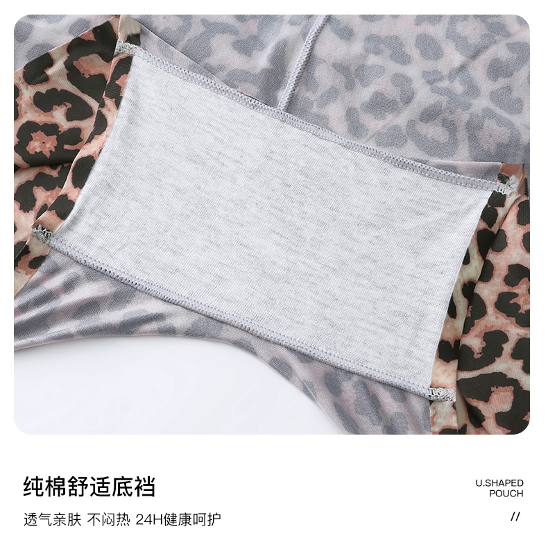 대외 무역 유럽과 미국의 얼음 실크 안전 속옷 여성 순수 코튼 가랑이 복서 팬티 중간 허리 레오파드 프린트 섹시한 대형 복서 팬티
