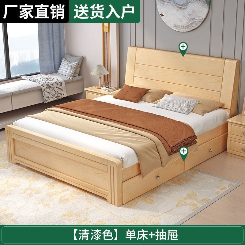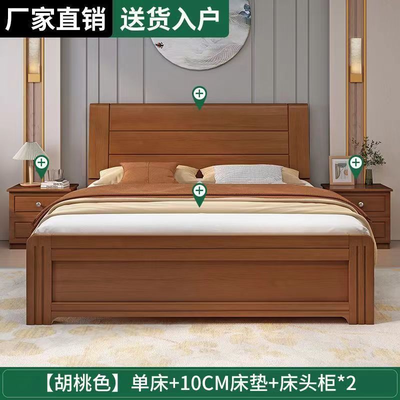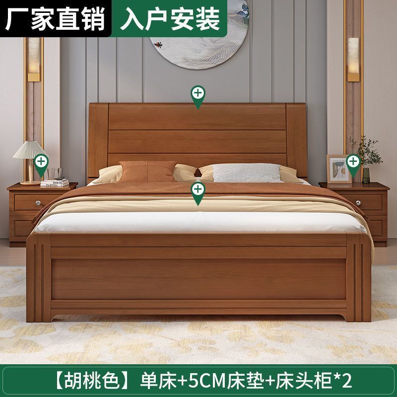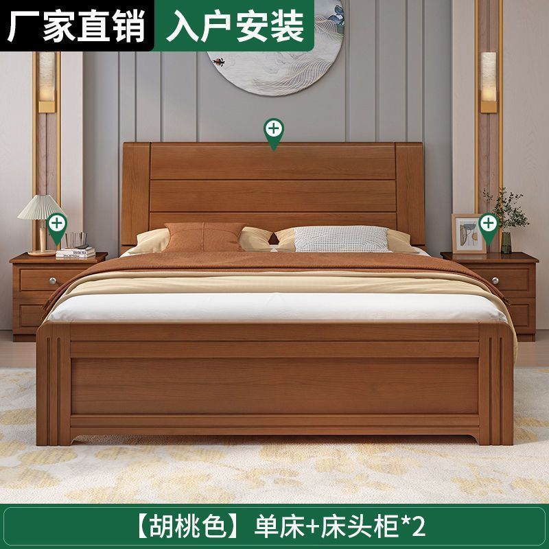 새로운 중국 스타일의 단단한 나무 침대 1.8 더블 침대 마스터 침실 간단한 1.2 싱글 침대 가정용 1.5 중국 스타일의 두꺼운 수납 침대스토어 가기