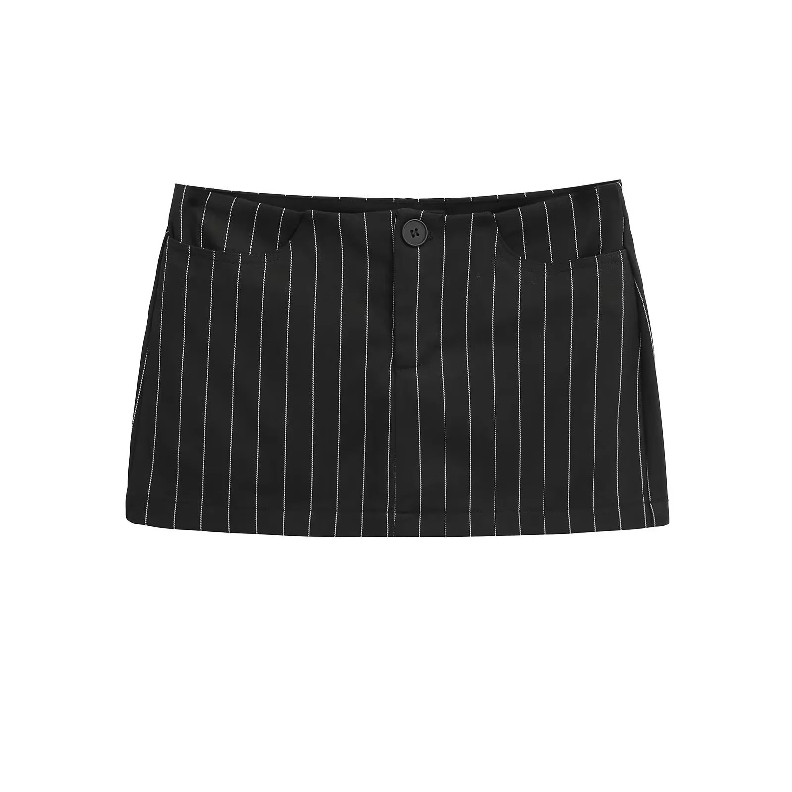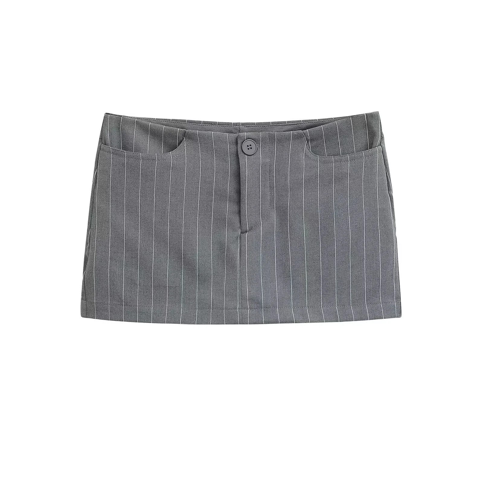 아메리칸 스타일의 새로운 로우 웨이스트 슬리밍 노출 방지 초단기 힙 커버 스커트 레트로 핫걸 스타일 스트라이프 A라인 스커트