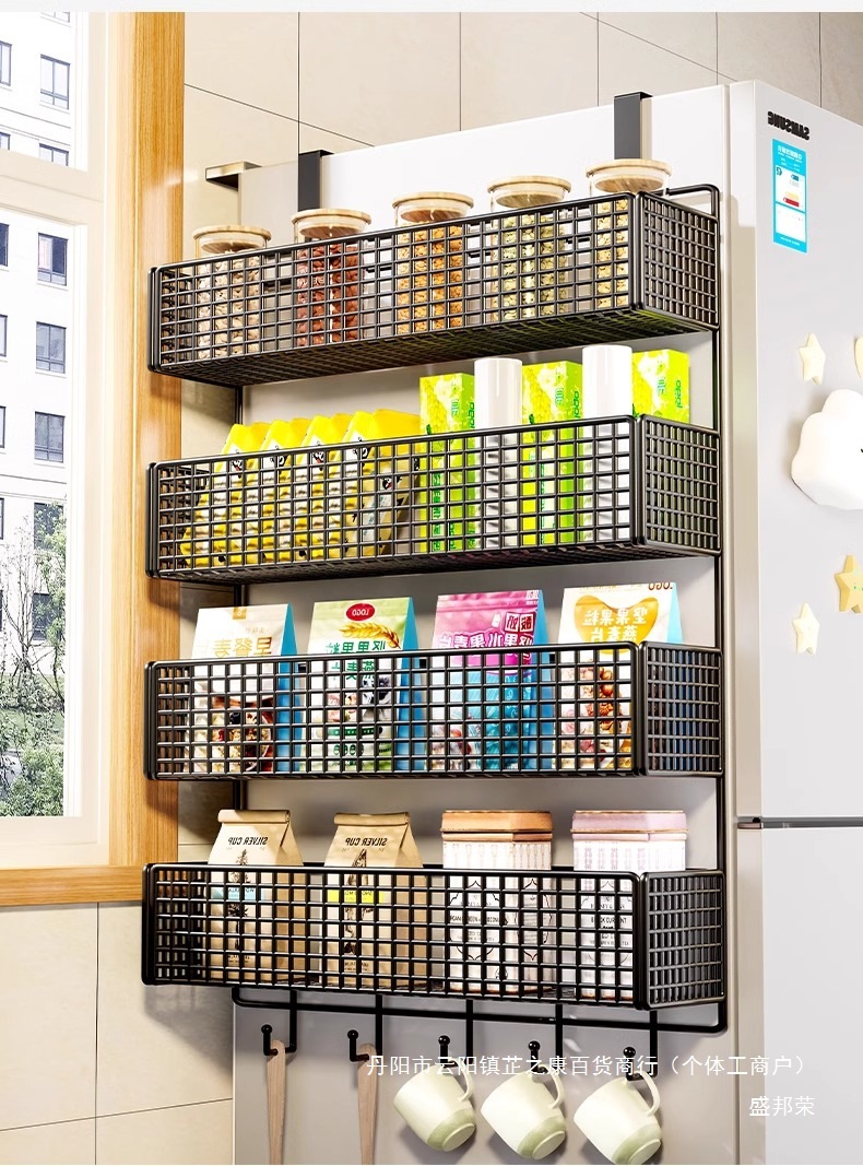 냉장고 선반 측면 수납 주방 다기능 조미료 측면 다층 걸이 후크 측면 측면 시원하고 시원합니다.스토어 가기