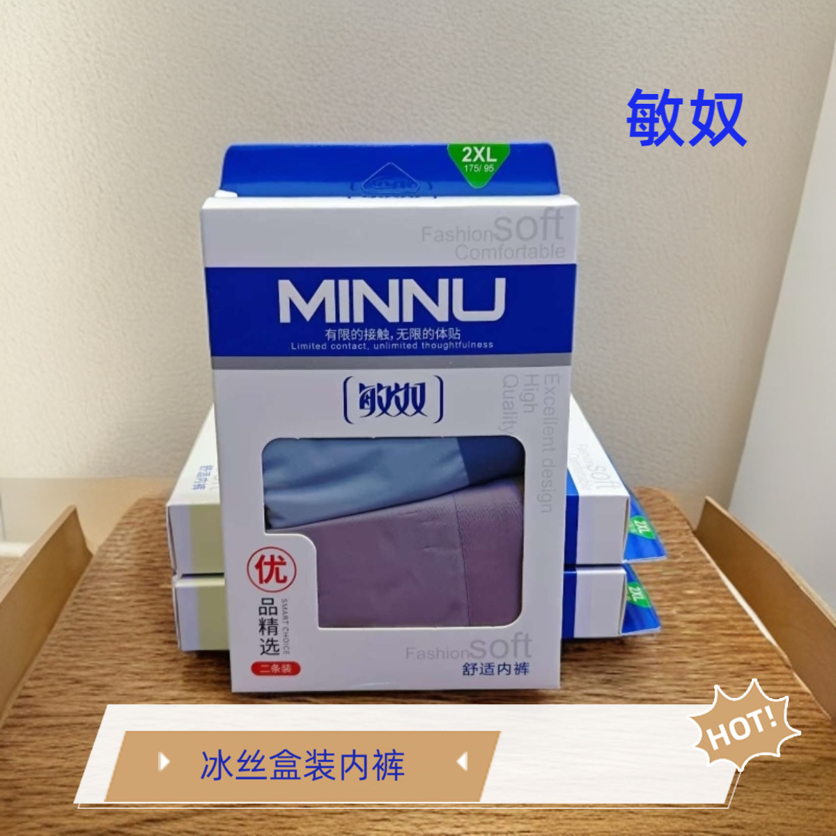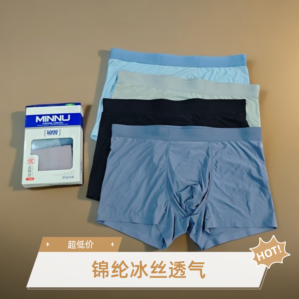 敏奴盒装冰丝无痕抑菌平角裤
