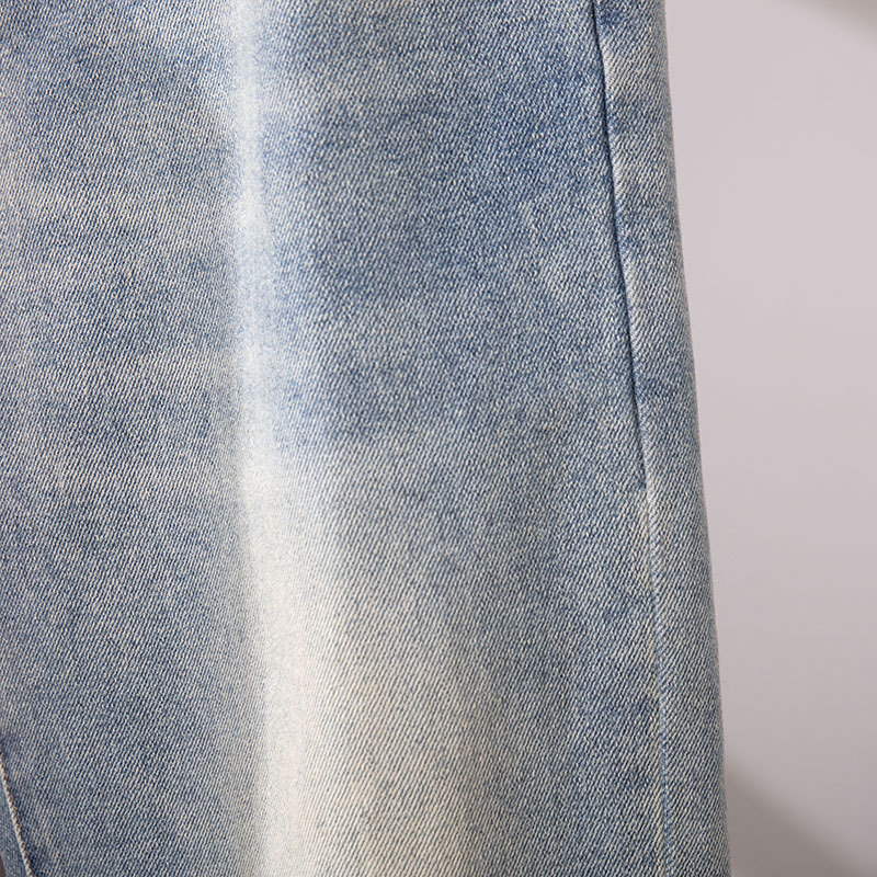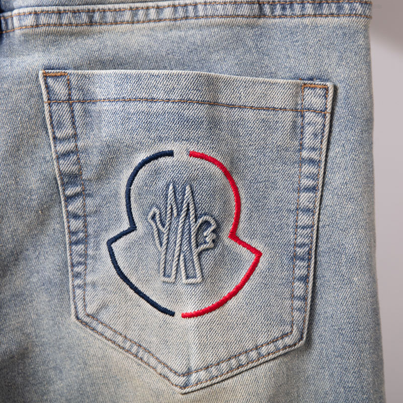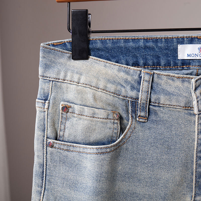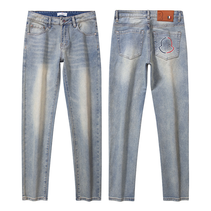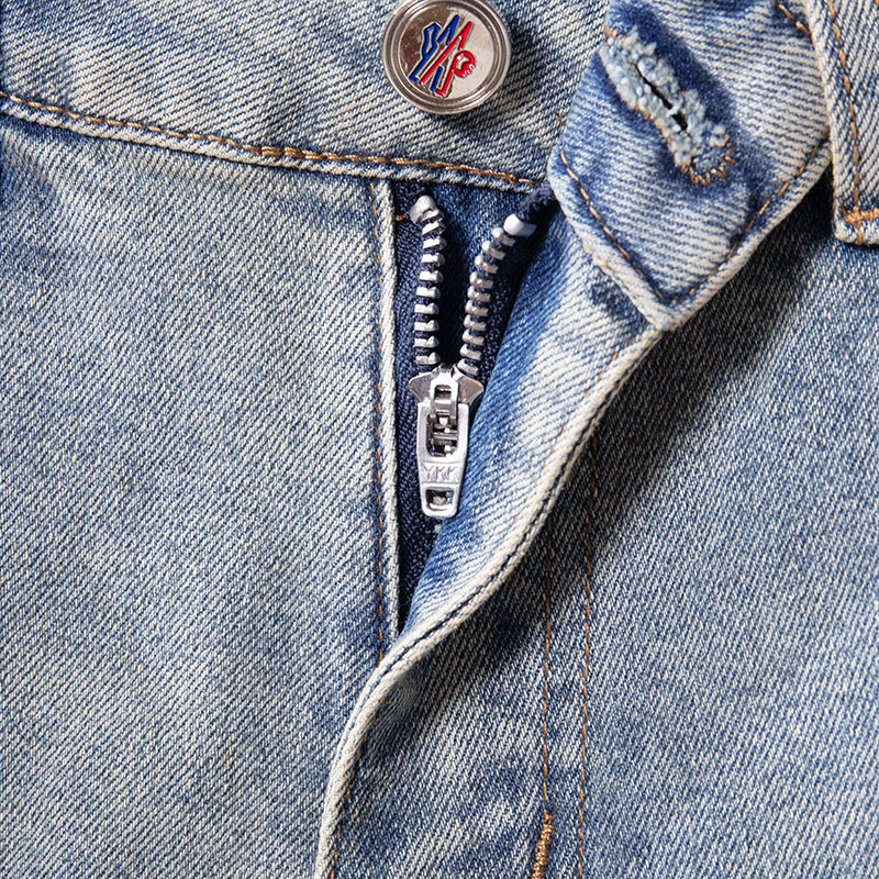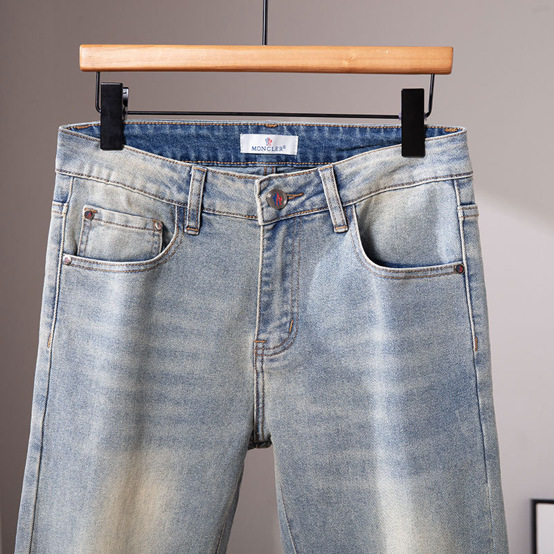 광저우 신탕 청바지 남성 한국 스타일 슬림핏 작은 발 크로스보더 대외 무역 유럽 제품 스트레치 프린트 라이트 블루 1:1 바지스토어 가기