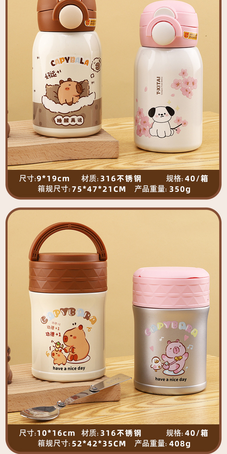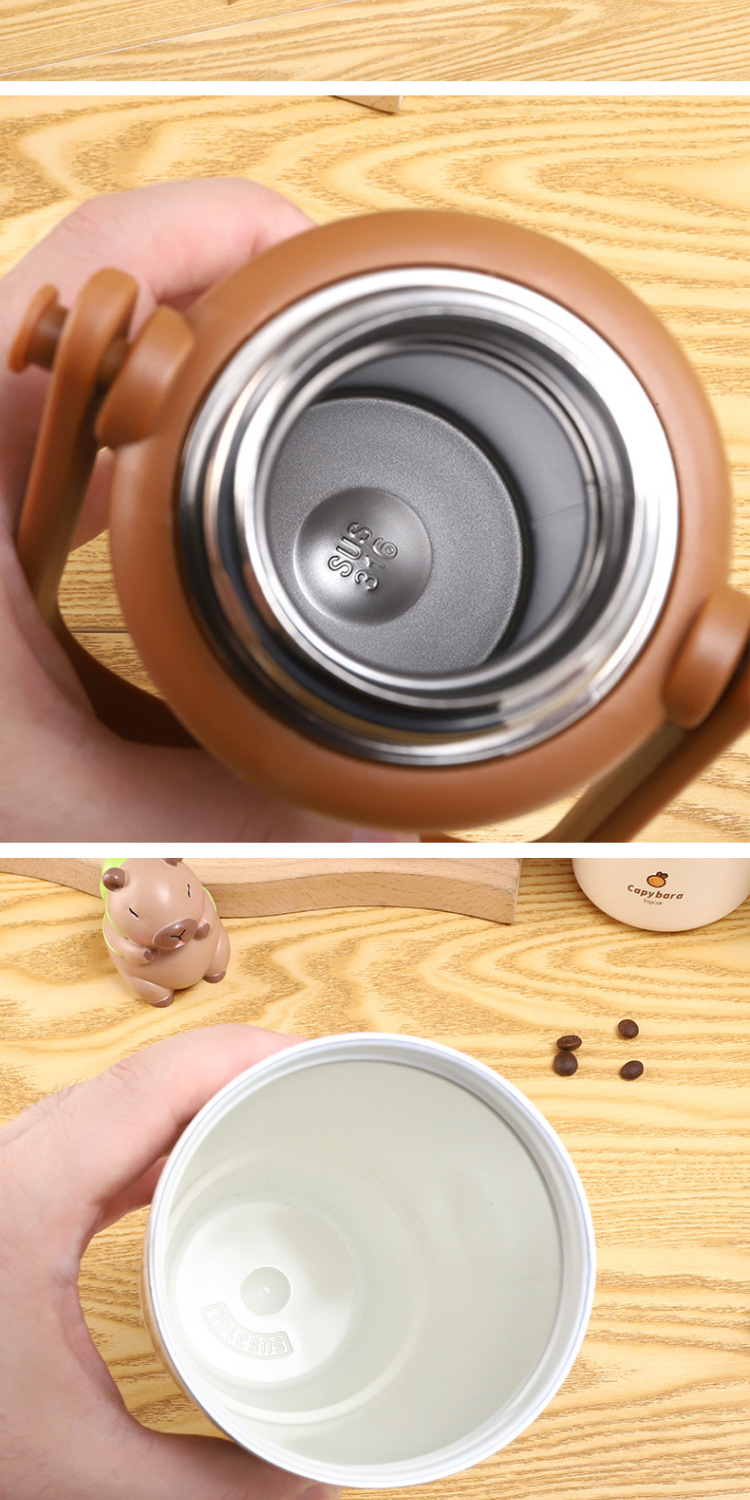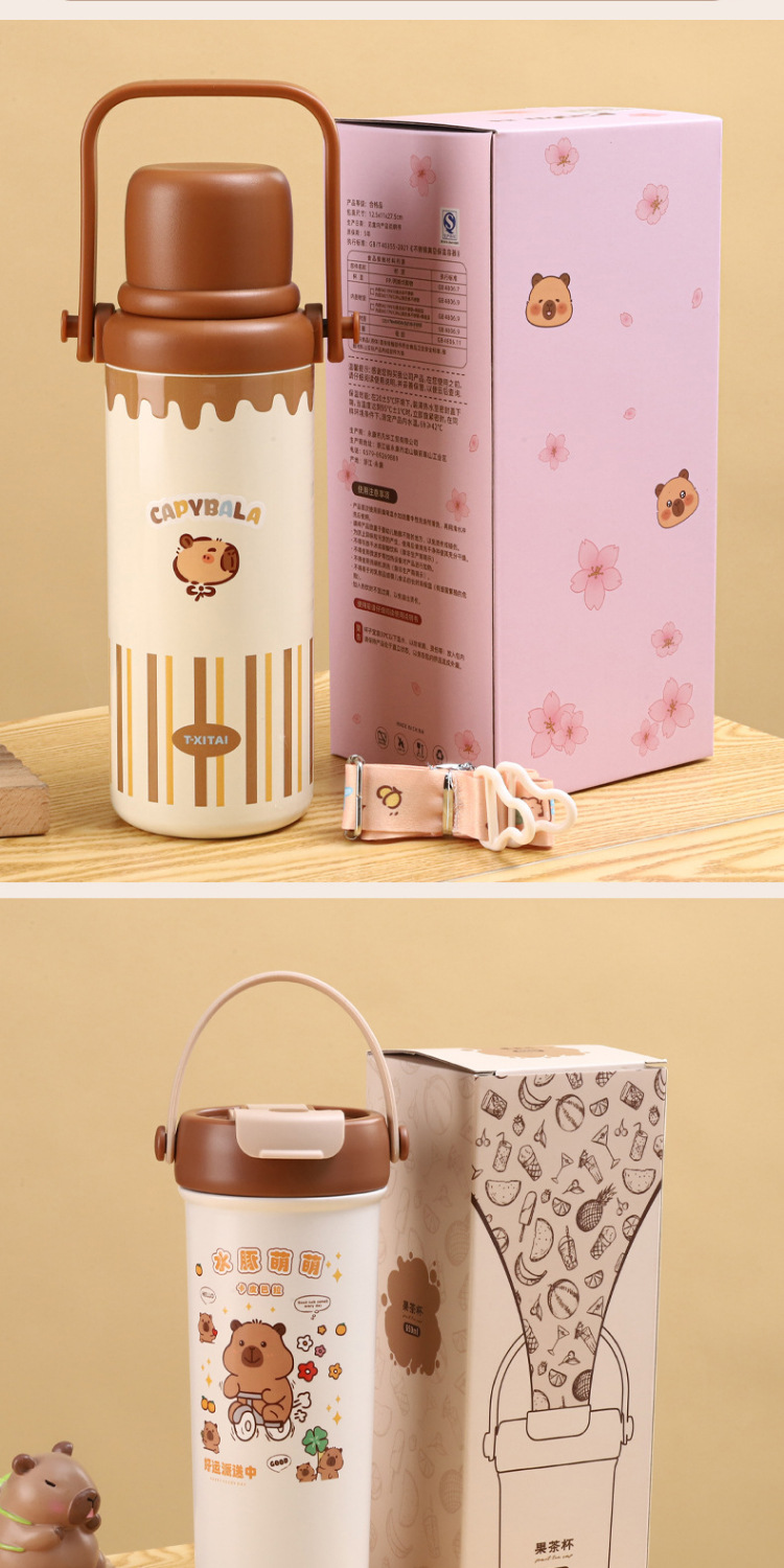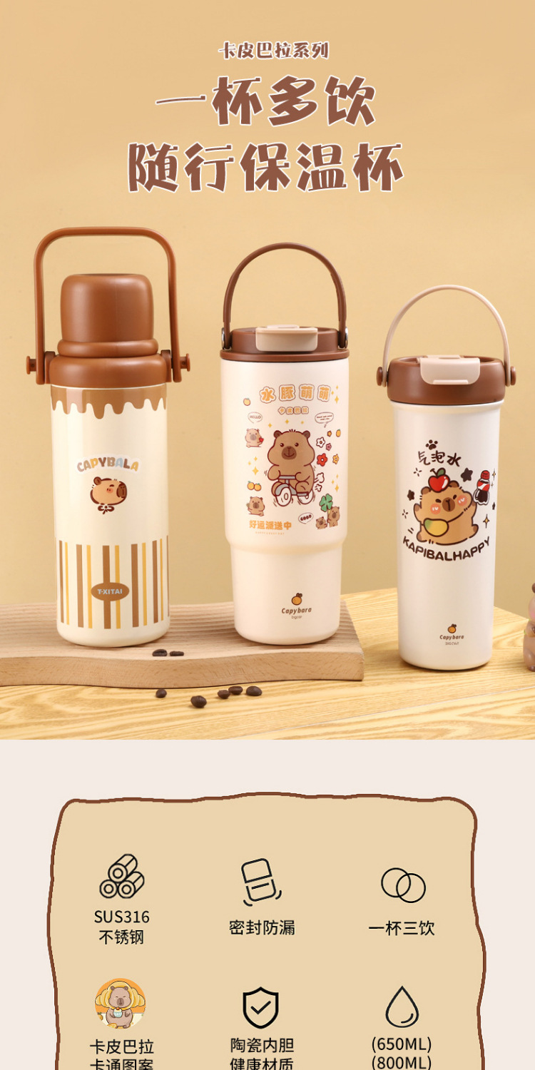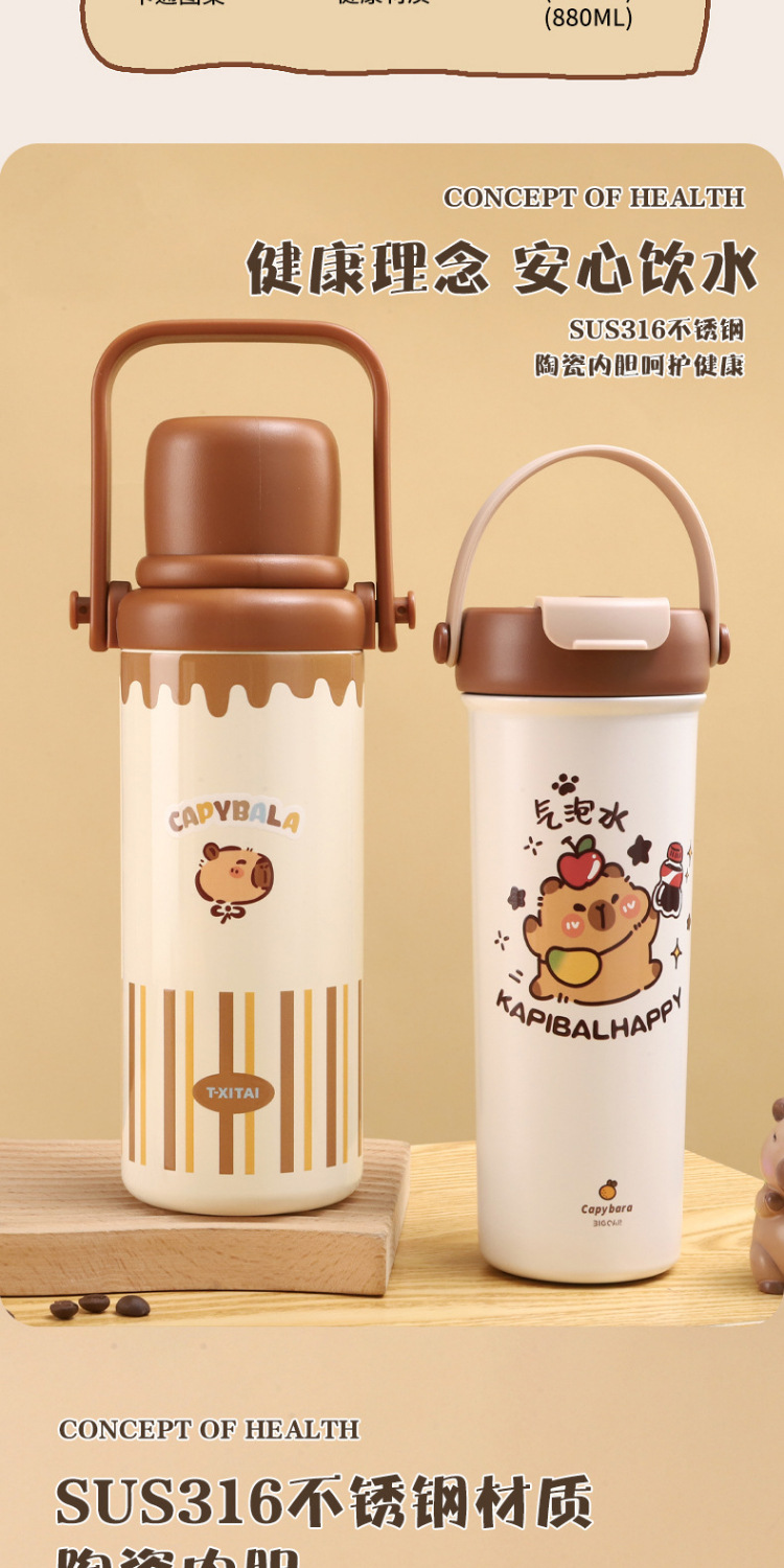 새로운 Kapibala 시리즈 보온병 컵, 고급스러운 대용량 손잡이 보온병 주전자, 316 스테인레스 스틸 밀짚 컵