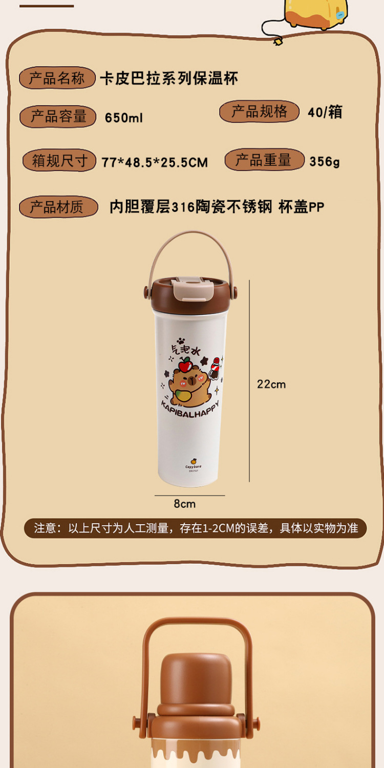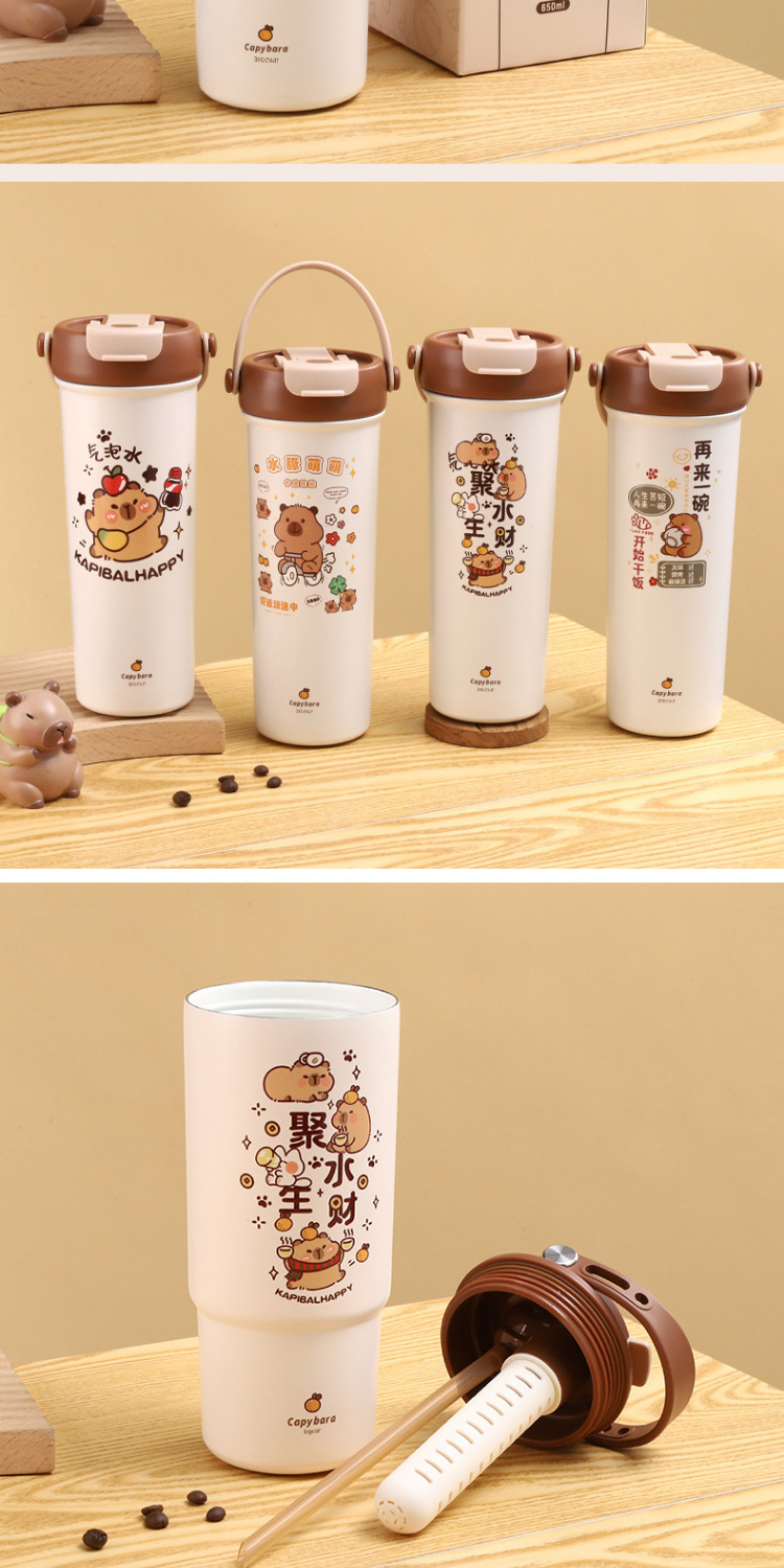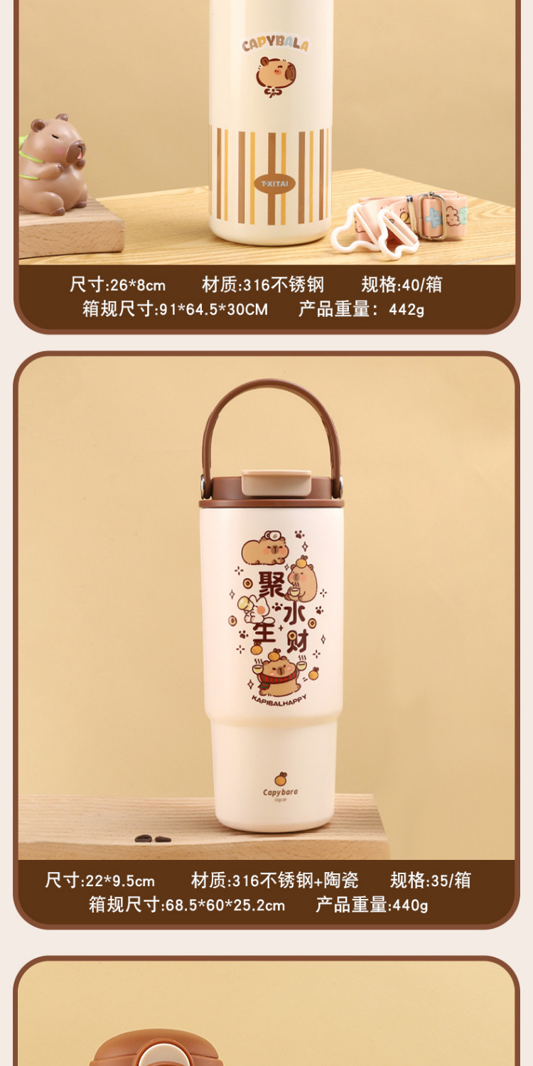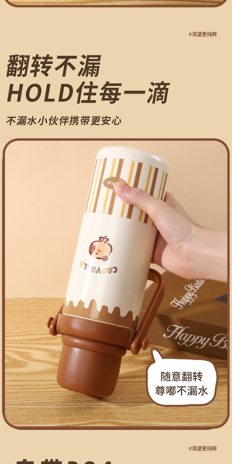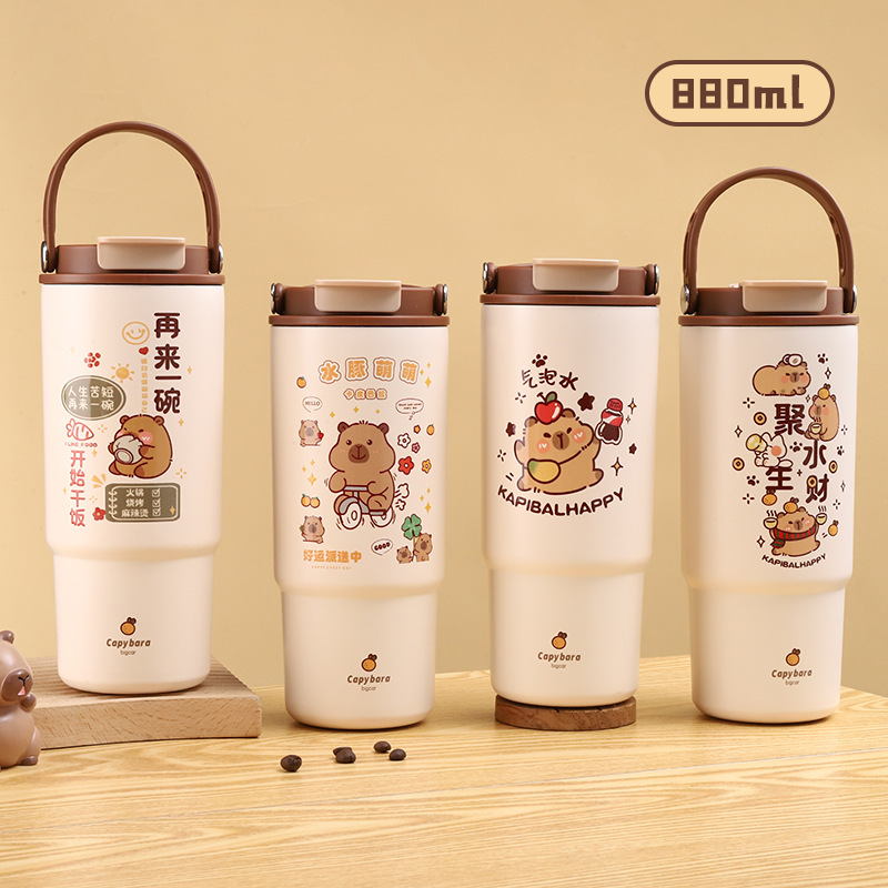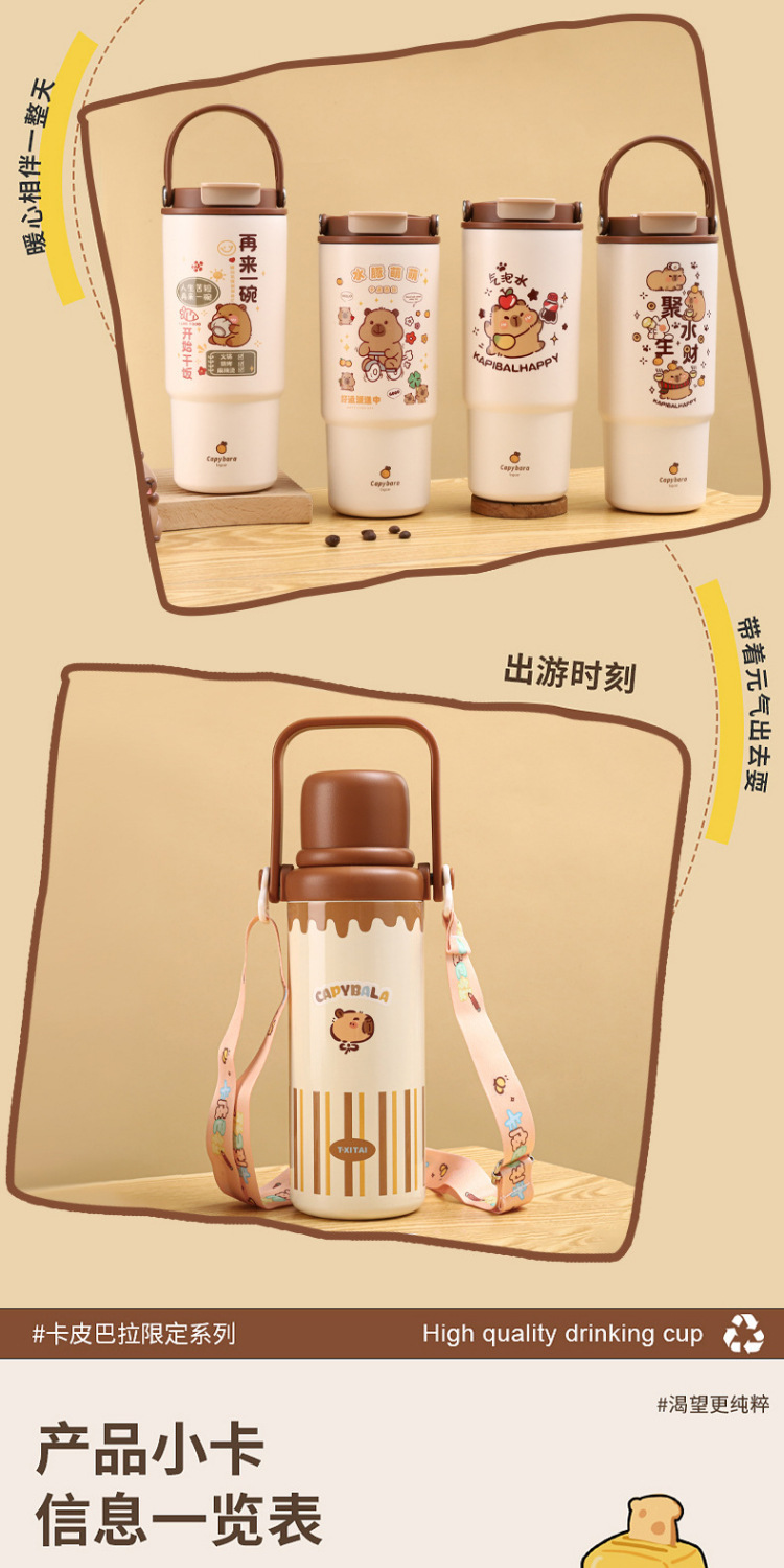 새로운 Kapibala 시리즈 보온병 컵, 고급스러운 대용량 손잡이 보온병 주전자, 316 스테인레스 스틸 밀짚 컵스토어 가기