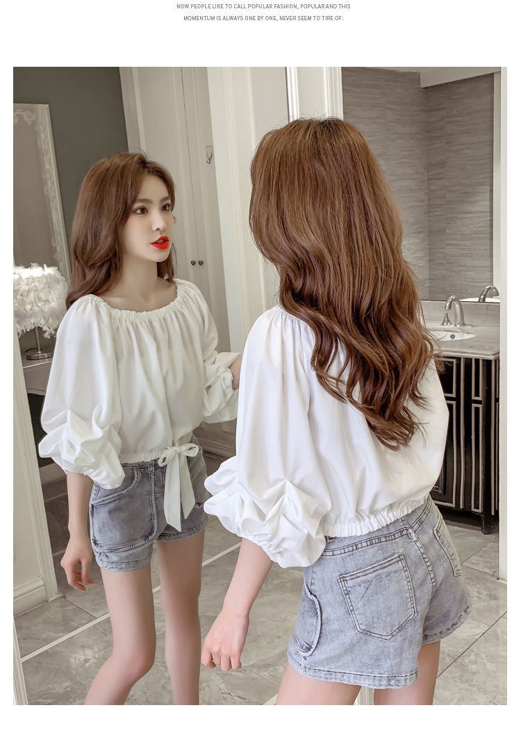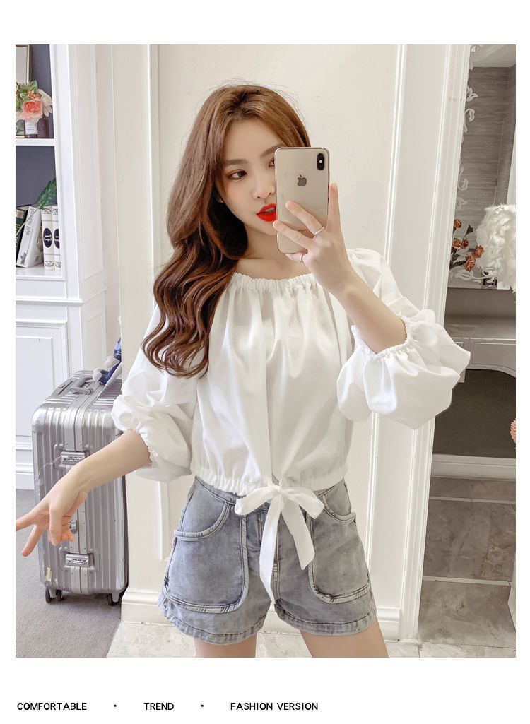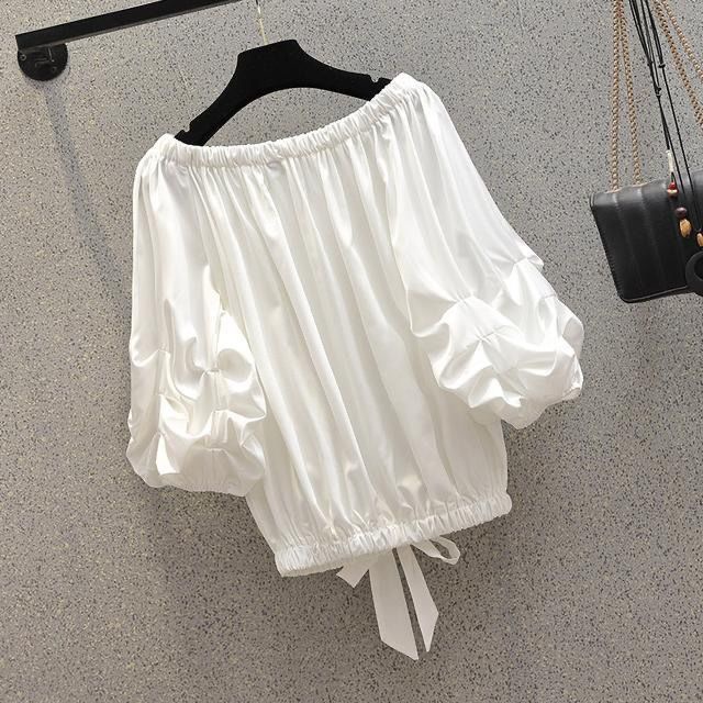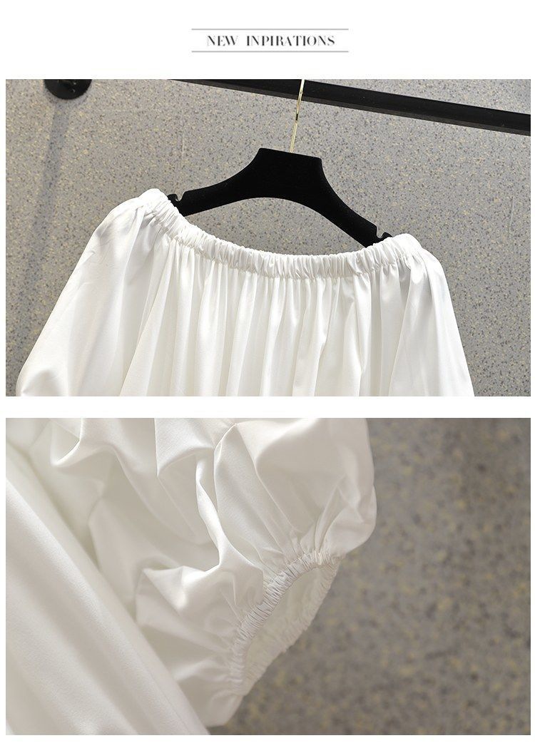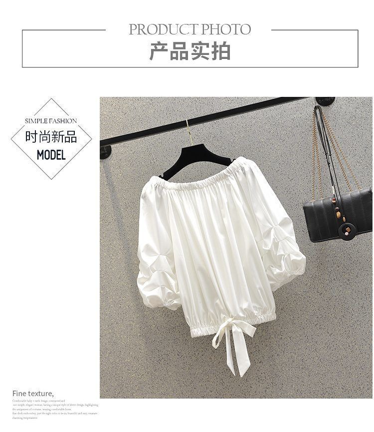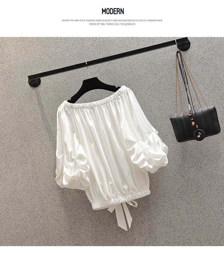 여름 플러스 사이즈 mm 뚱녀 다용도 배 커버 미드 슬리브 쉬폰 셔츠 원 숄더 퍼프 슬리브 탑 루즈 100kg스토어 가기