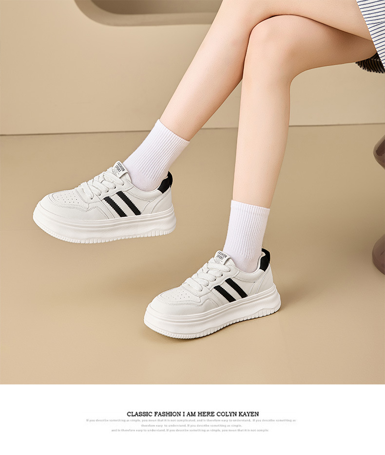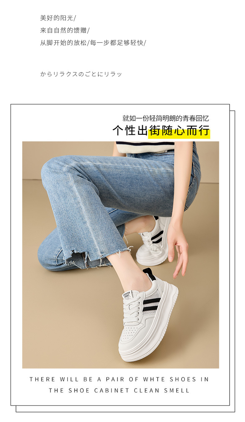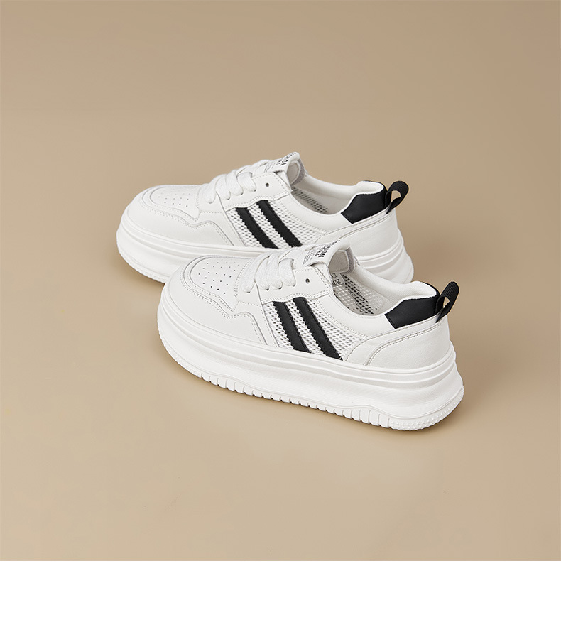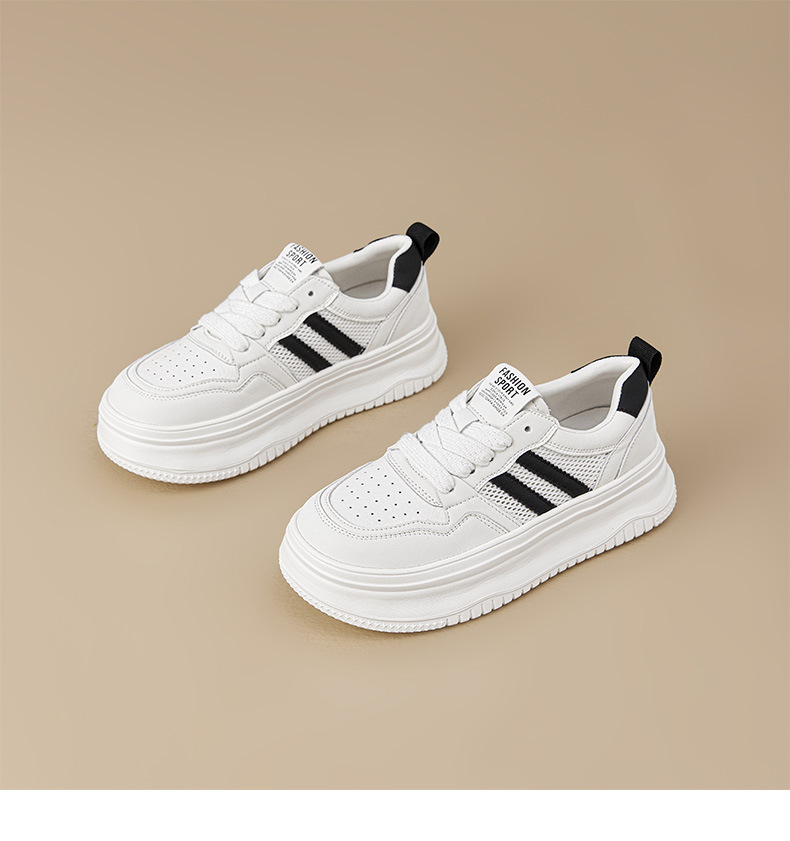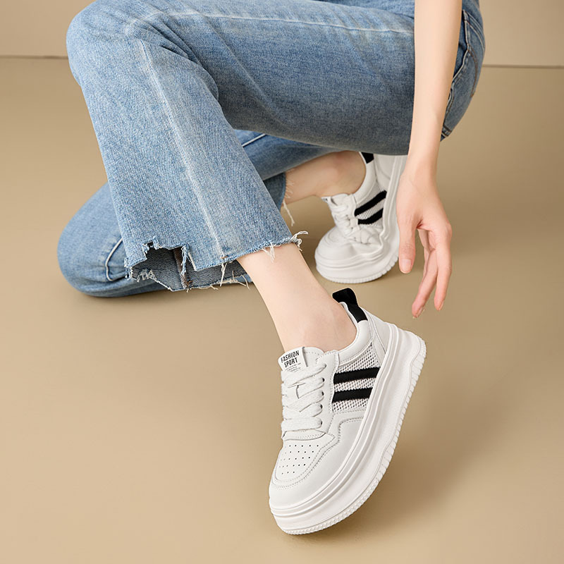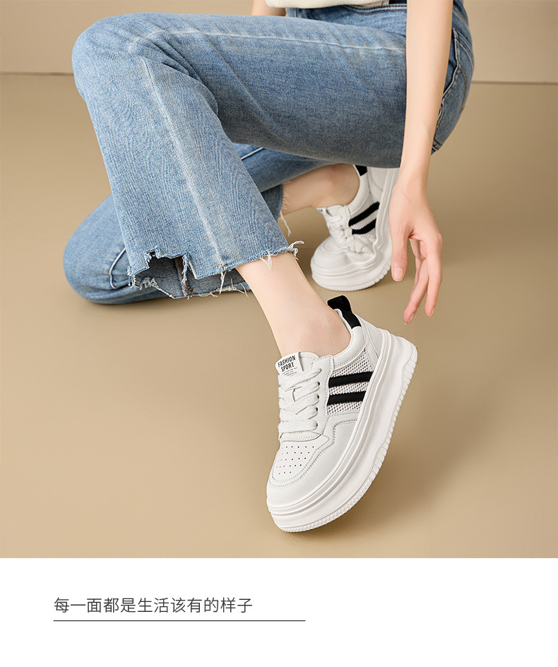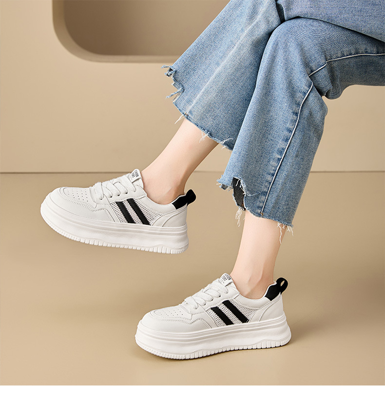 여성을 위한 천연 가죽 두꺼운 밑창 흰색 신발, 다용도 메쉬 통기성 운동화, 2025 여름 신작 캐주얼 신발 및 운동화스토어 가기