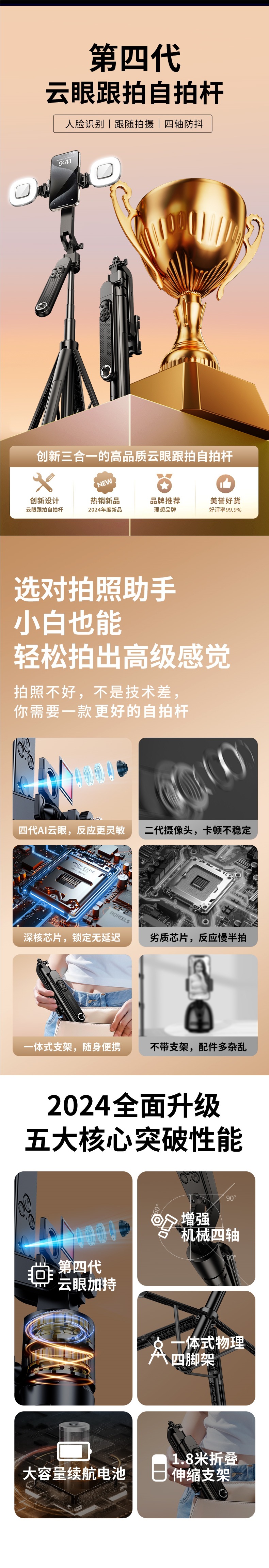 • 블랙 1.8m [AI 지능형 얼굴 추적 + Douyin 리모콘] 흔들림 방지 4축 + 저장