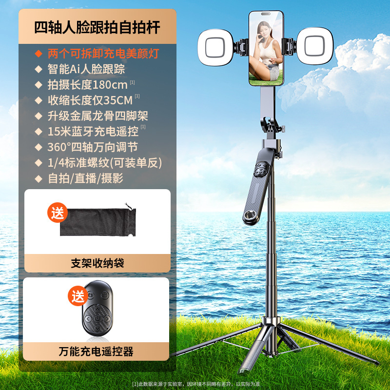 • 블랙 1.8m + 듀얼 필라이트 [AI 지능형 얼굴 추적 + Douyin 리모콘] 손떨림 방지