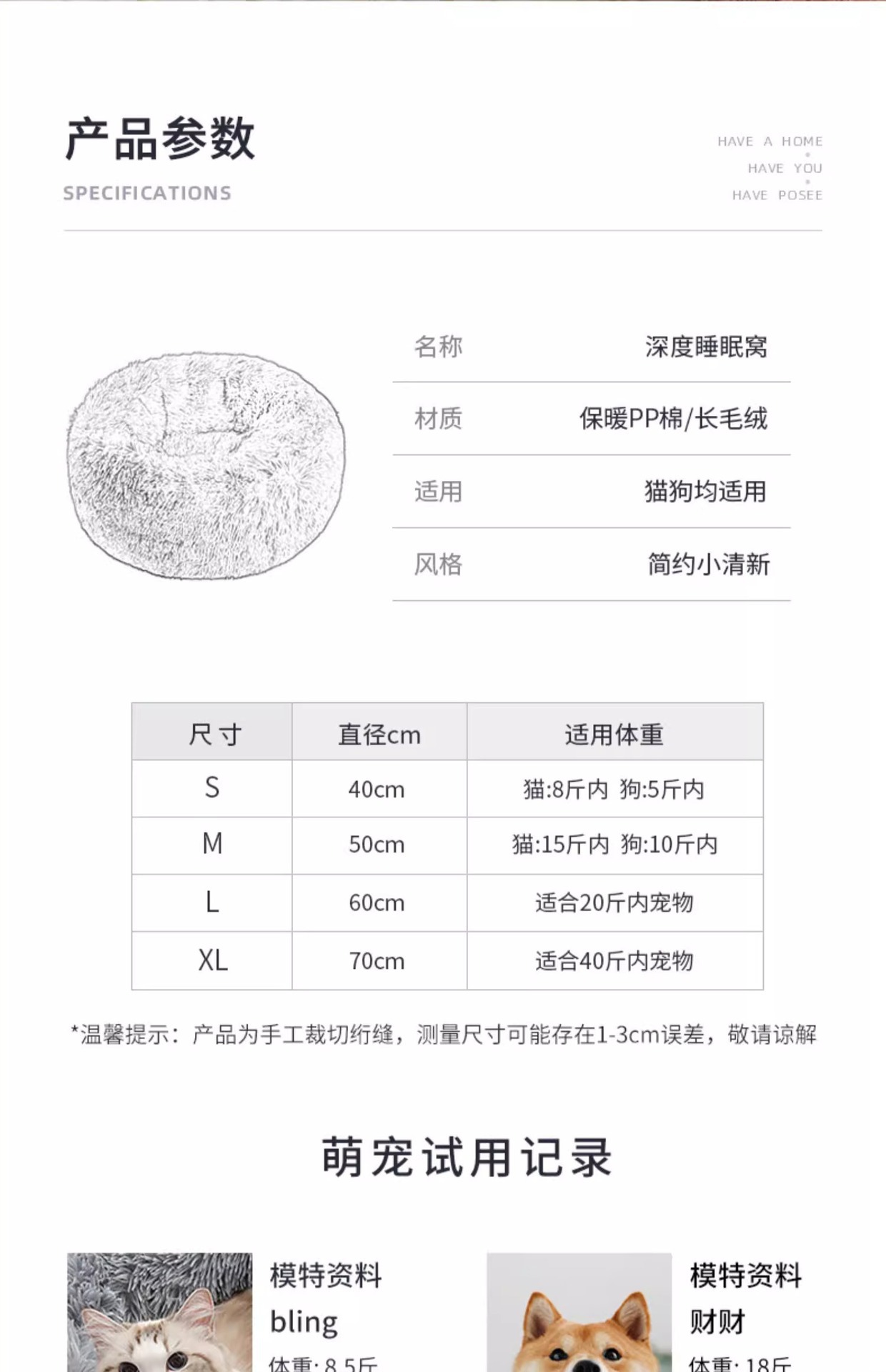 猫窝狗窝长毛绒宠物窝圆形宠物床冬季保暖狗垫可拆洗宠物垫子