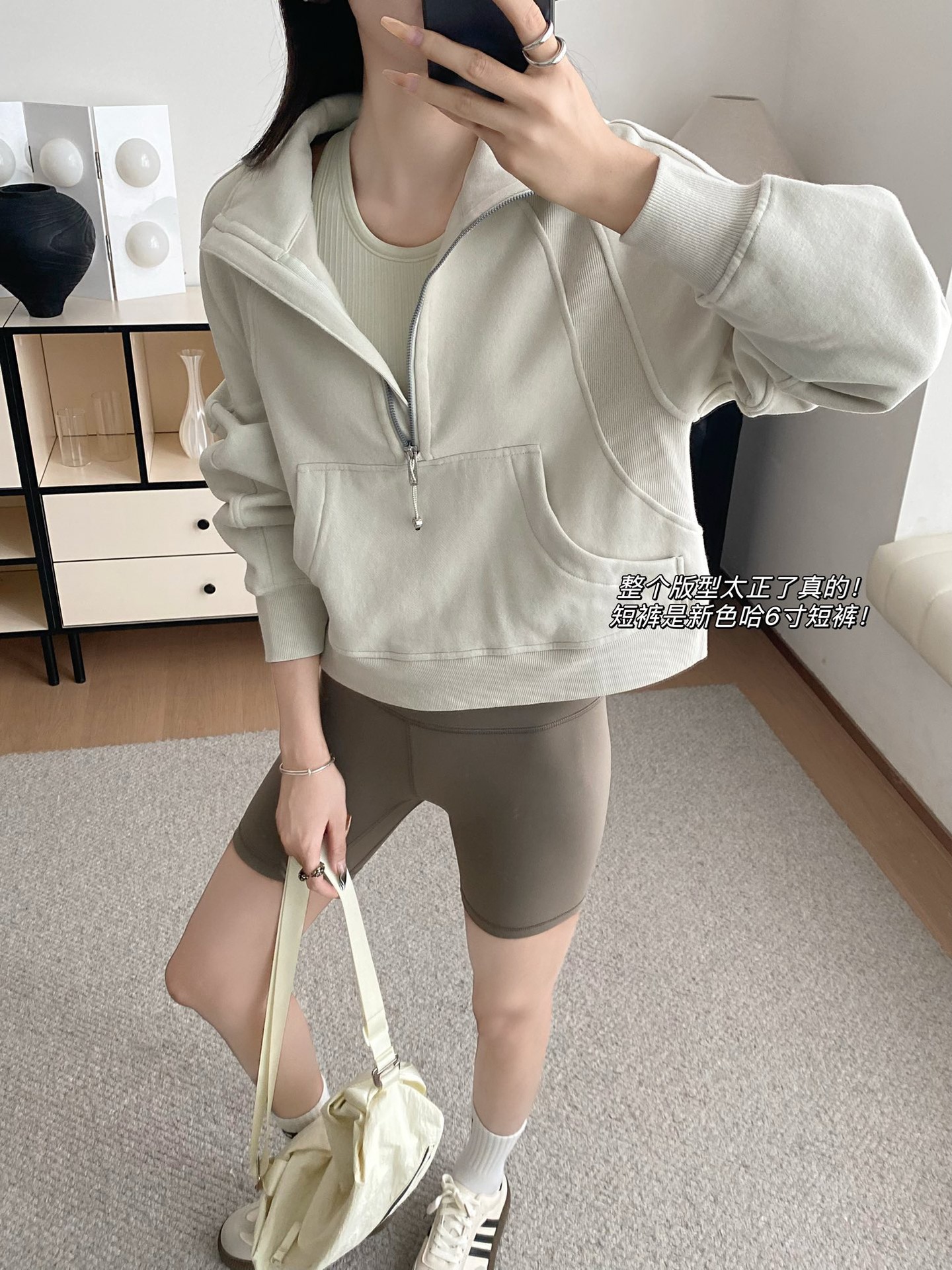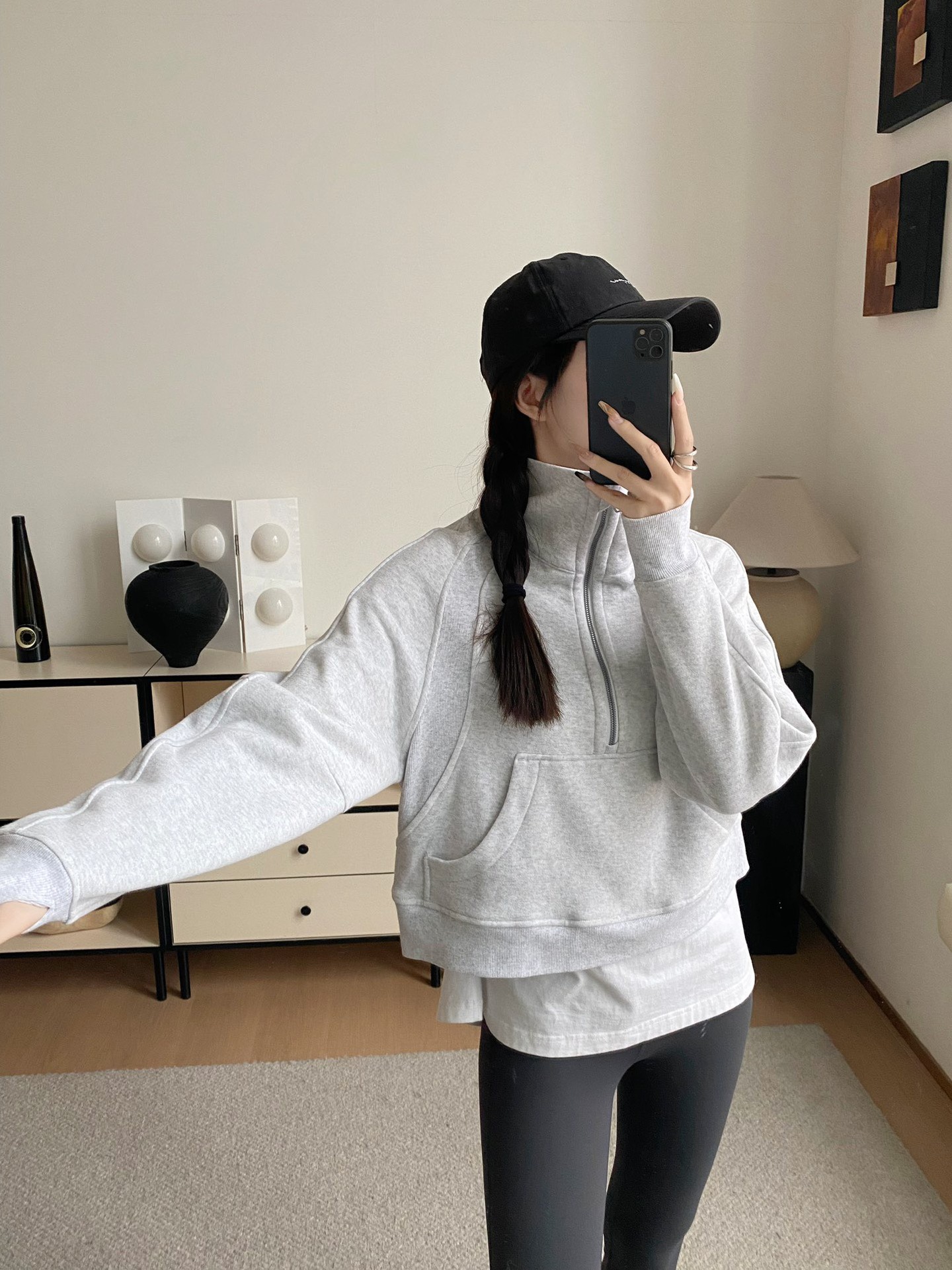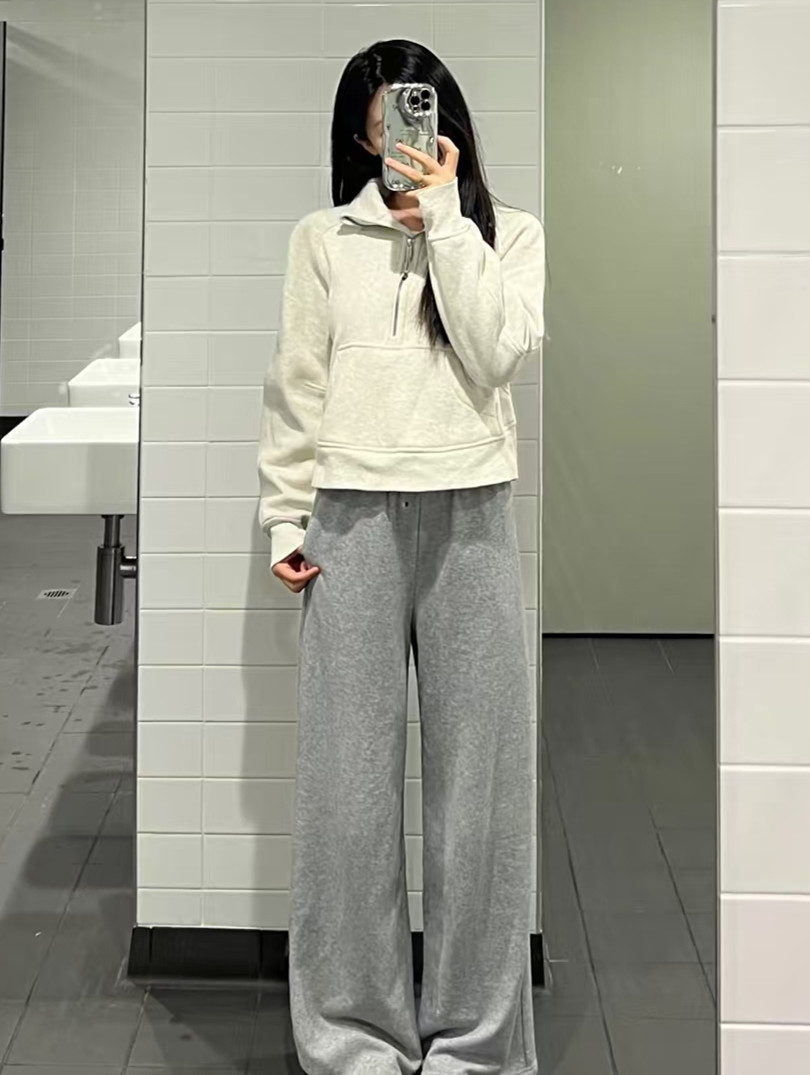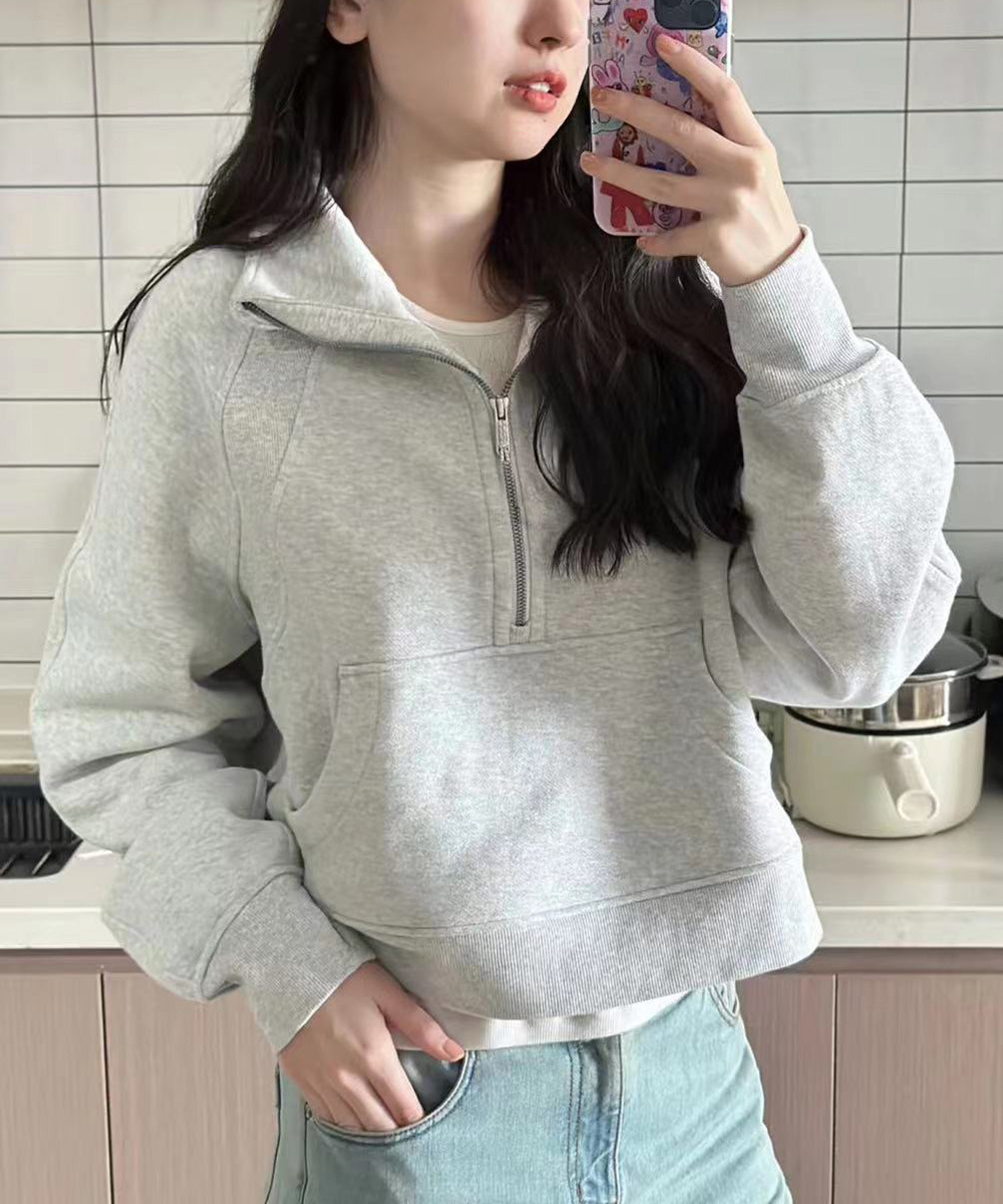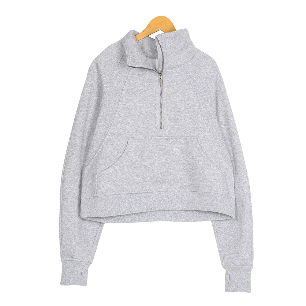 • 그레이 하프 풀 스탠드 칼라 스웨트셔츠