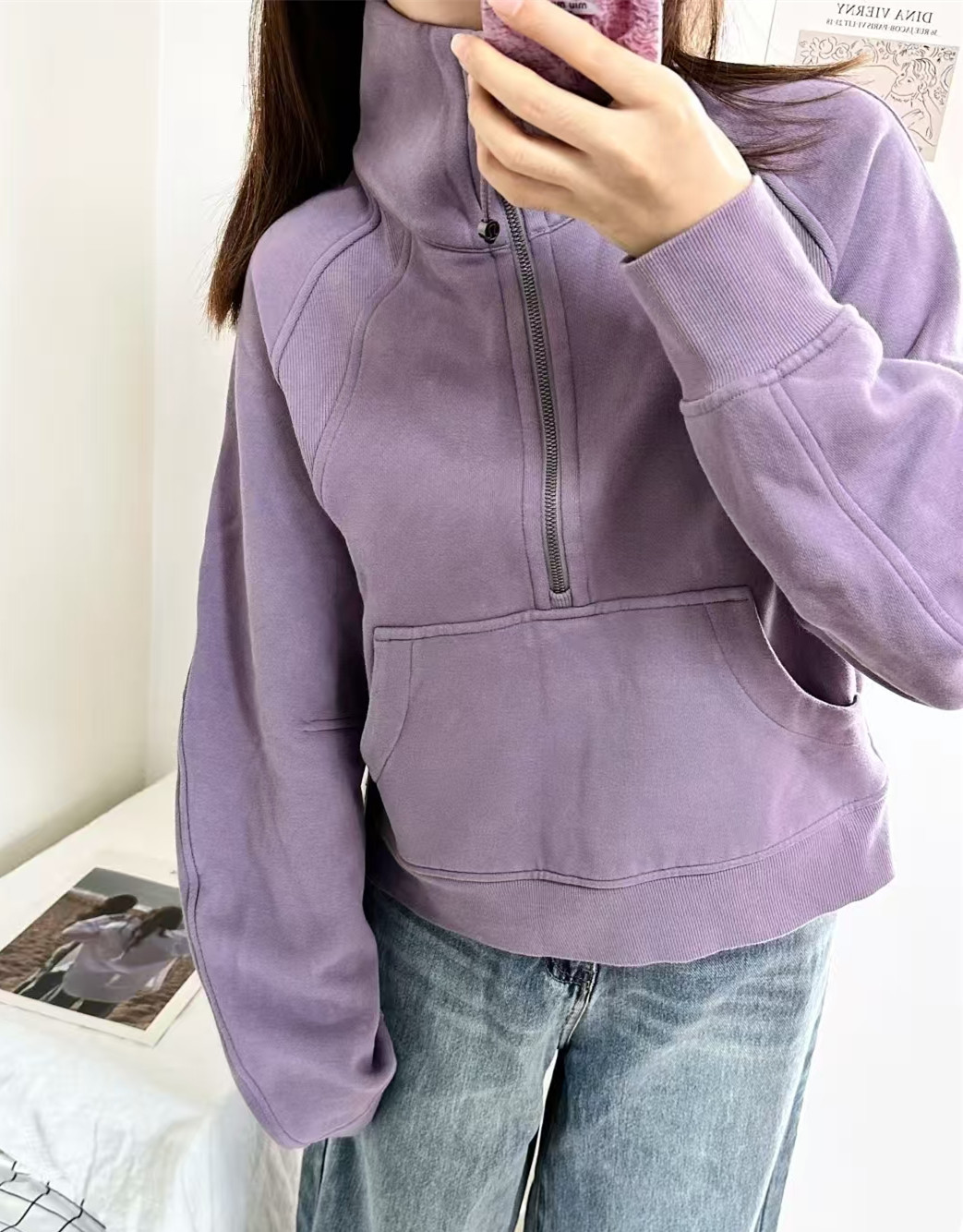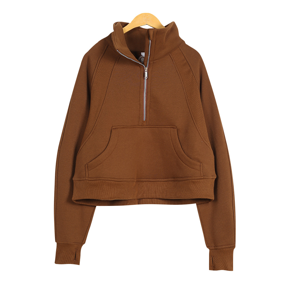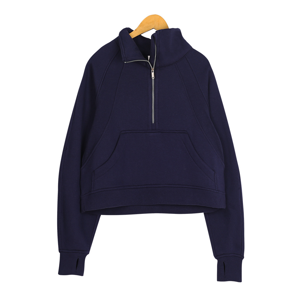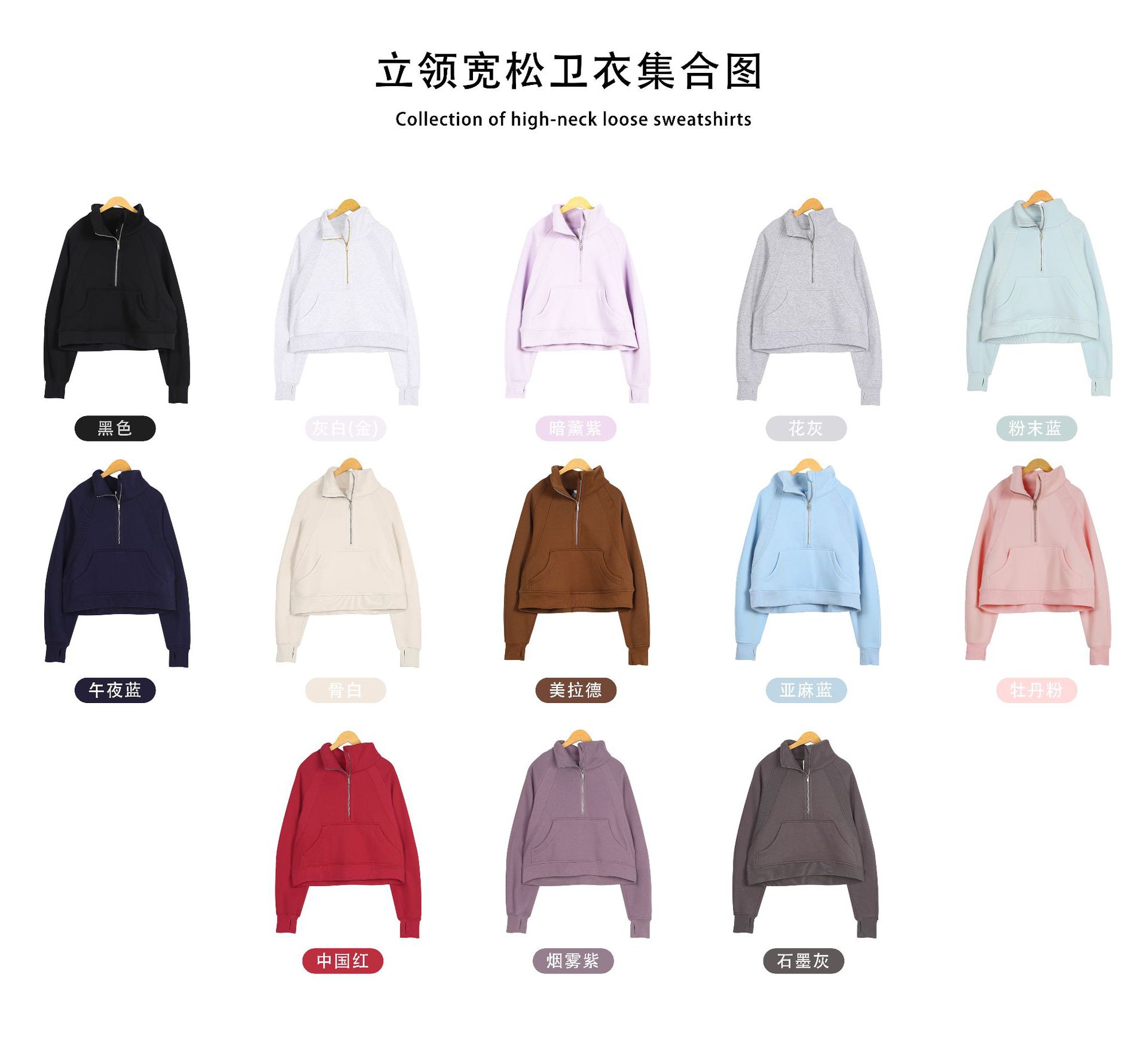 룰루 오리지널 라벨 스웨트셔츠 스쿠버 하이넥 반지퍼 루즈 벨벳 요가복 여성 자수 스포츠 재킷 캐주얼스토어 가기