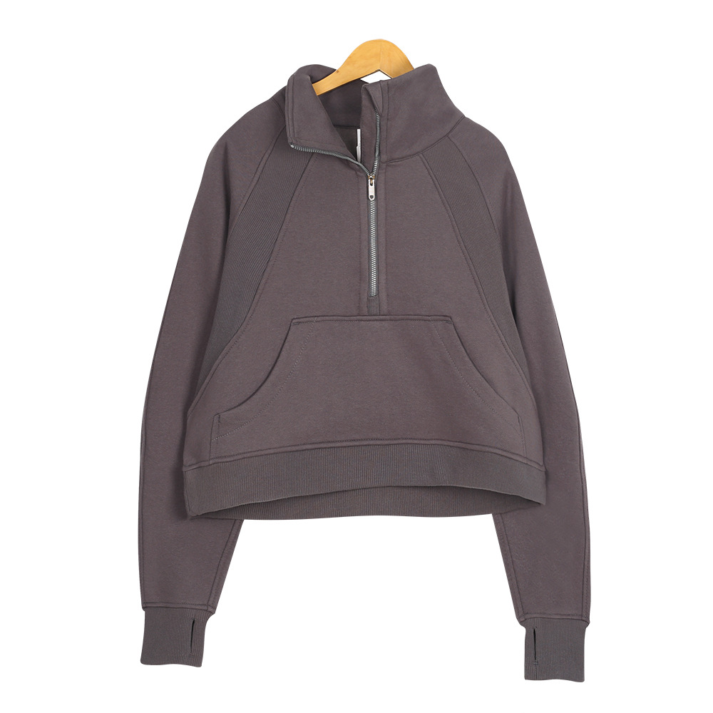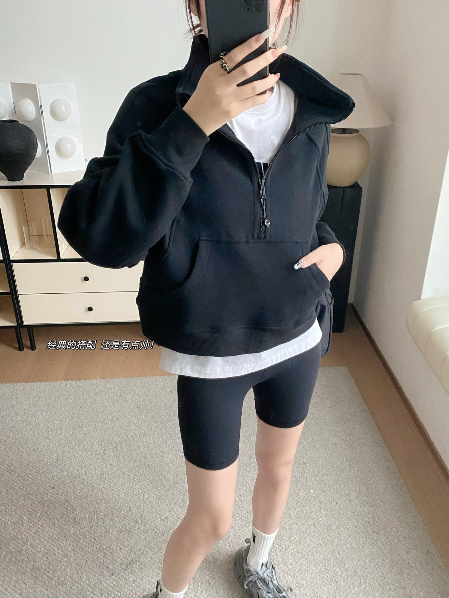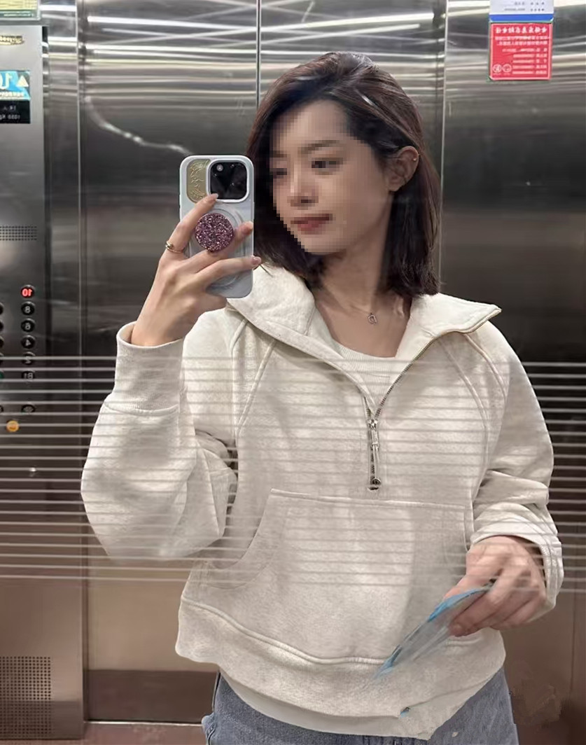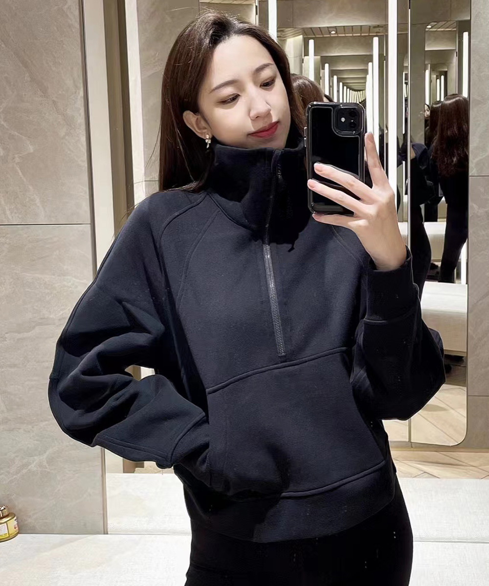 룰루 오리지널 라벨 스웨트셔츠 스쿠버 하이넥 반지퍼 루즈 벨벳 요가복 여성 자수 스포츠 재킷 캐주얼스토어 가기