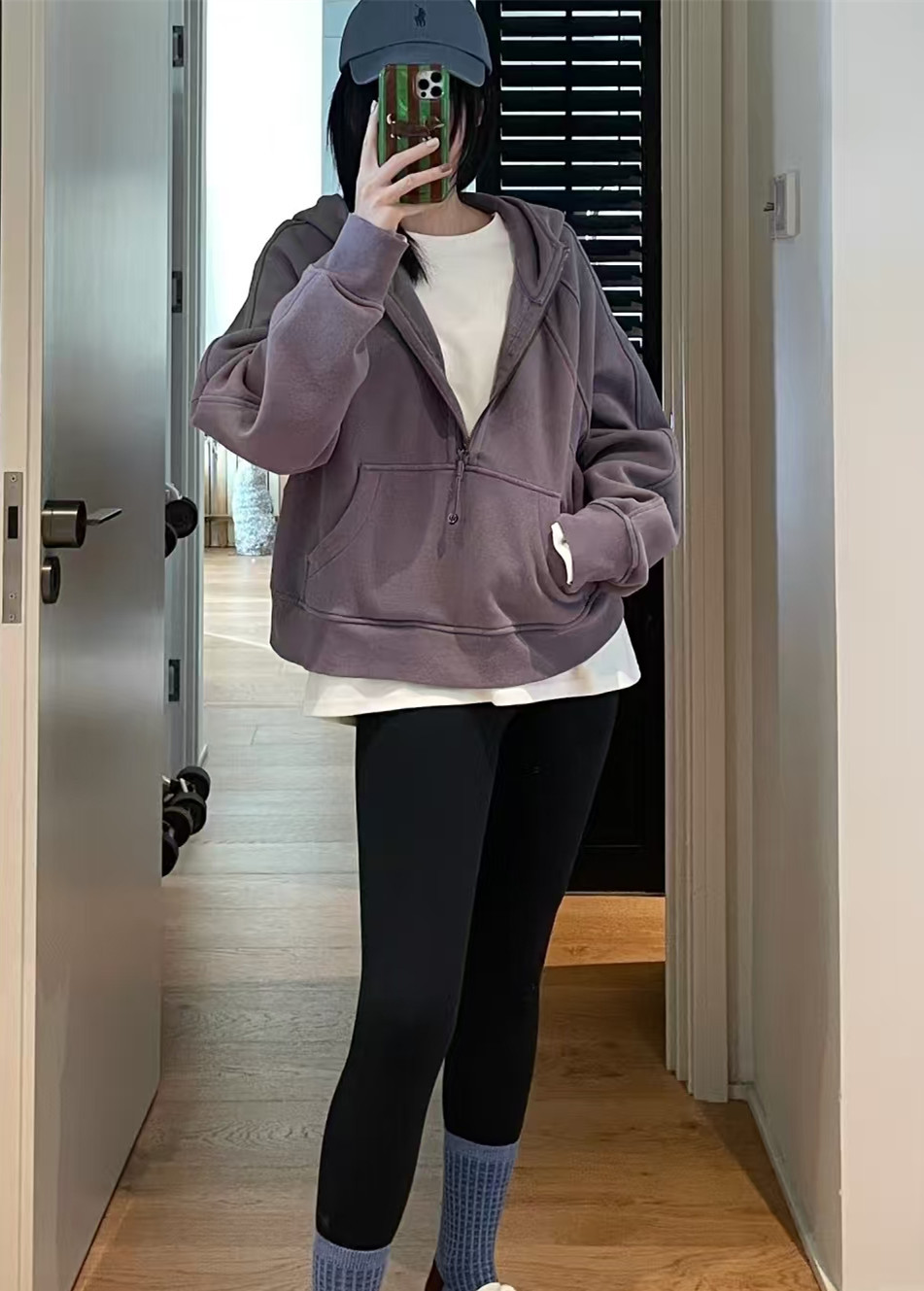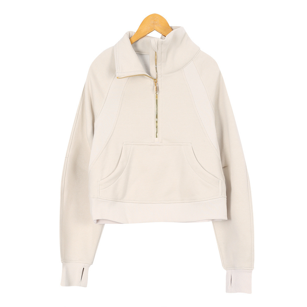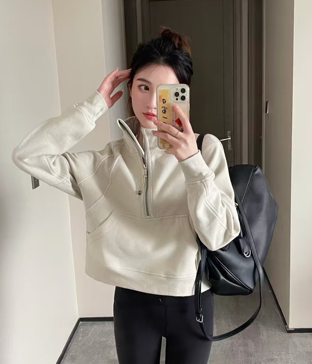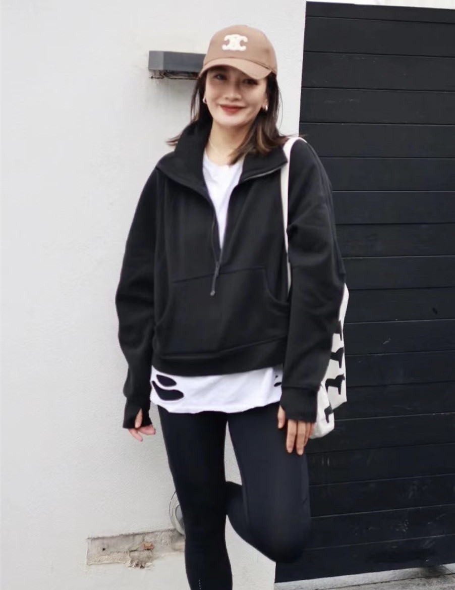 룰루 오리지널 라벨 스웨트셔츠 스쿠버 하이넥 반지퍼 루즈 벨벳 요가복 여성 자수 스포츠 재킷 캐주얼스토어 가기