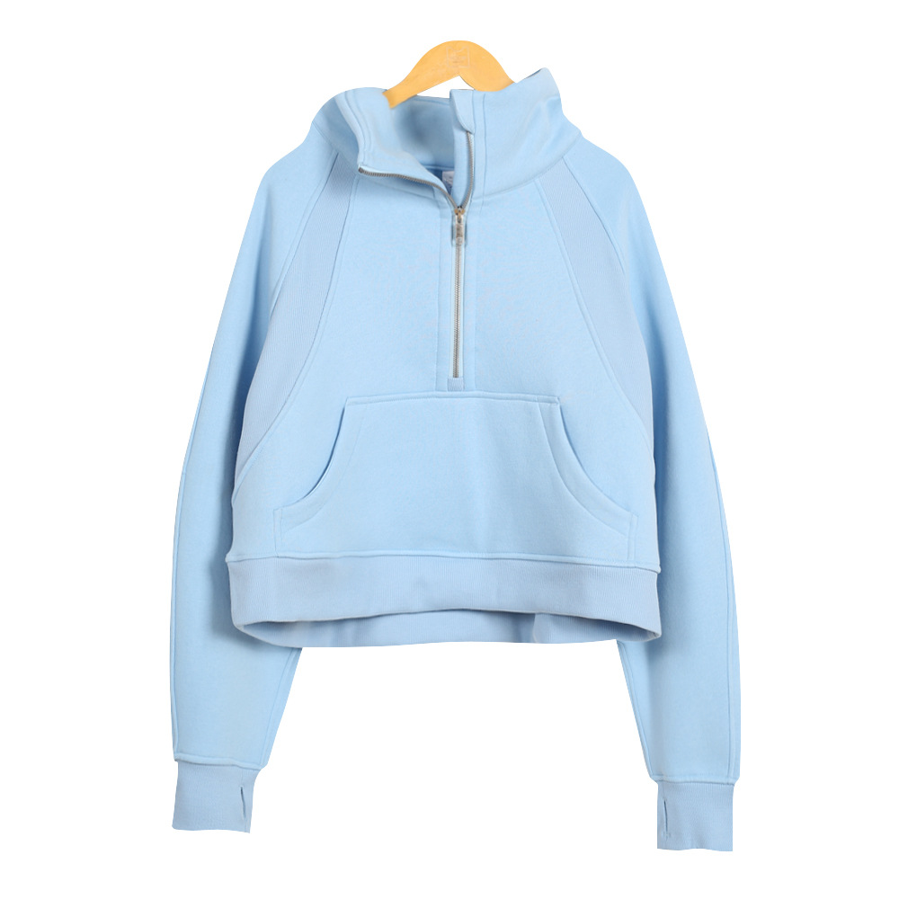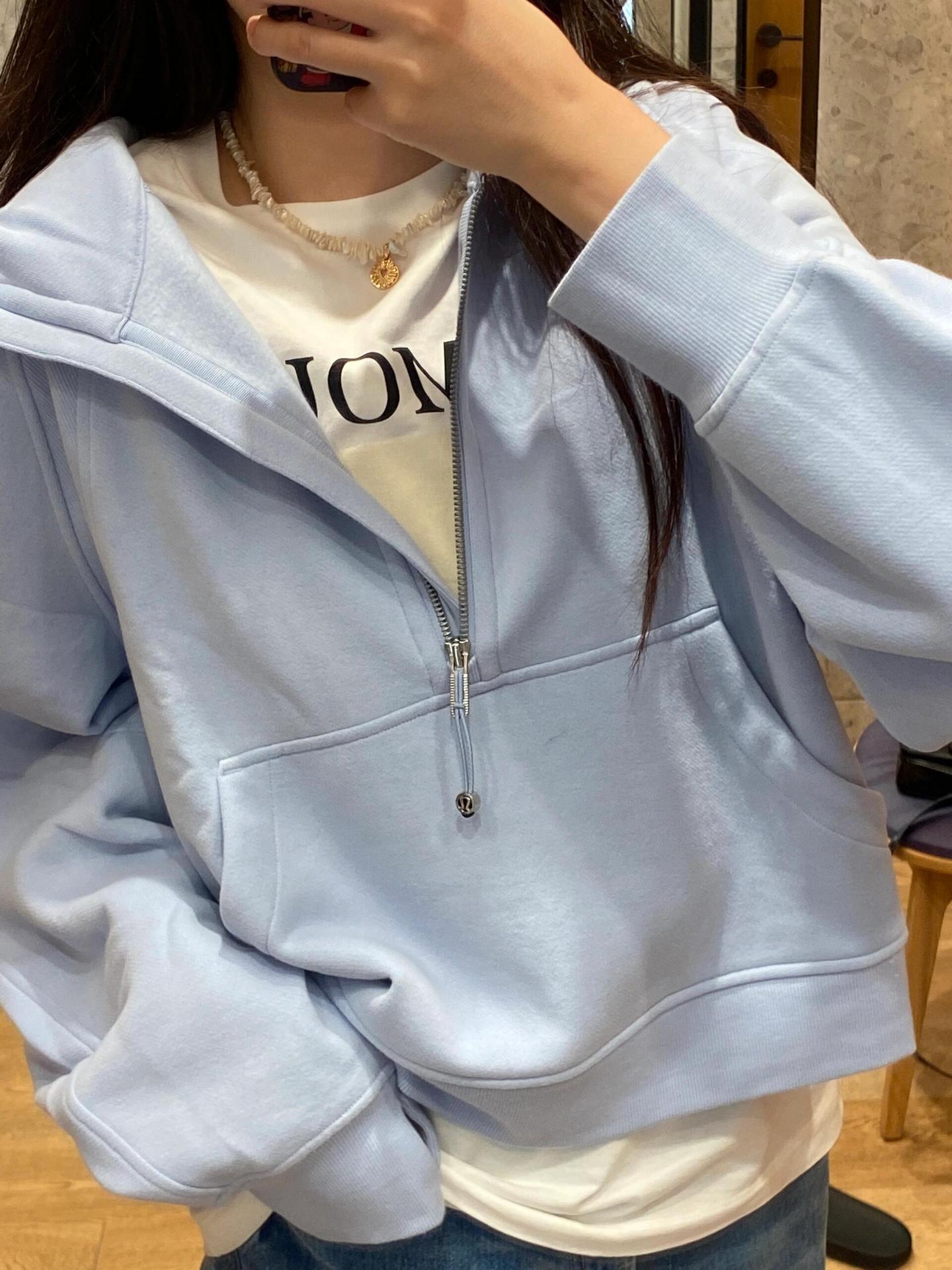 • 파우더 블루 하프 풀 스탠드 칼라 스웨트셔츠
