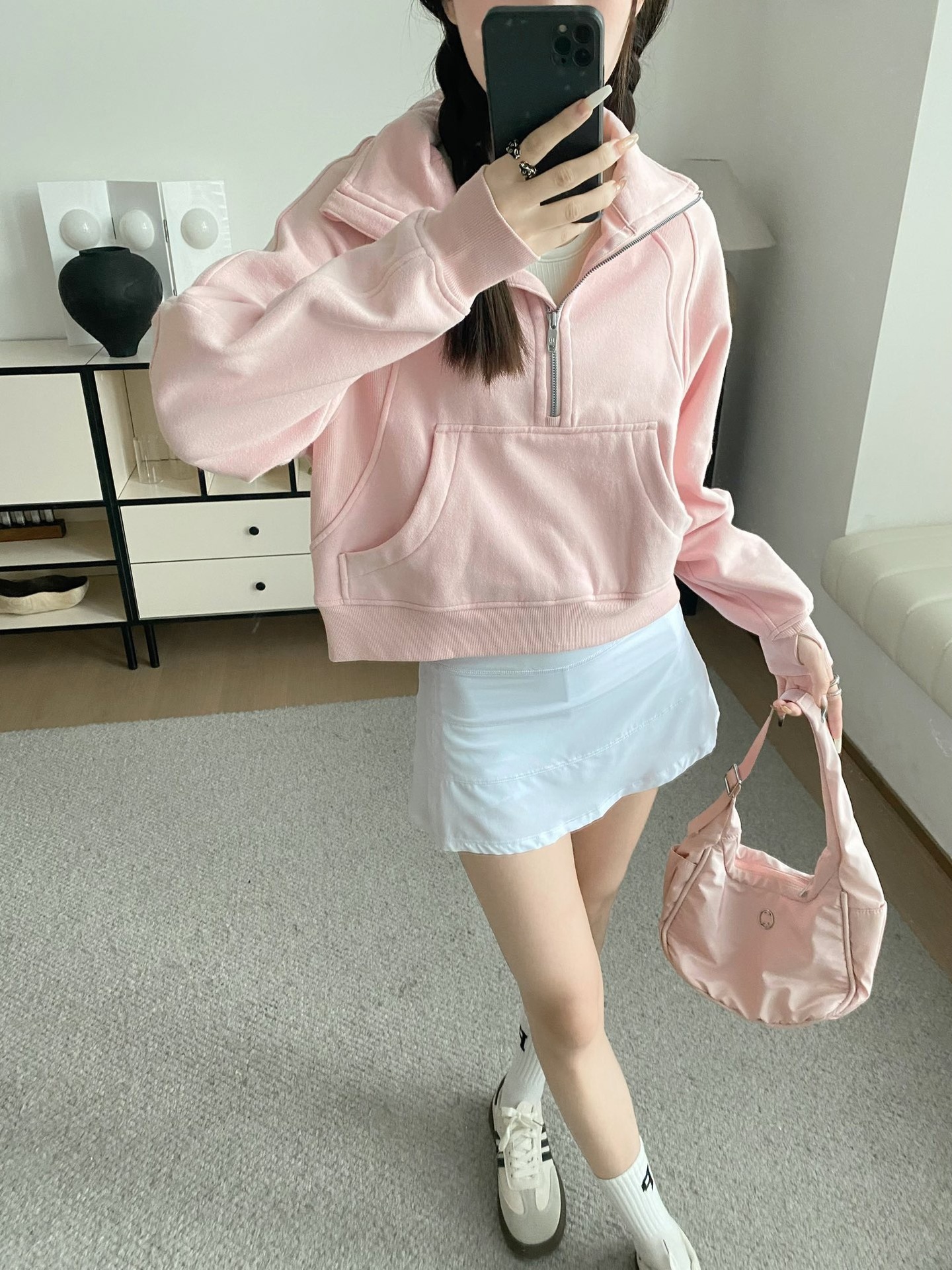 • 피오니 핑크 하프 풀 스탠드 칼라 스웨트셔츠