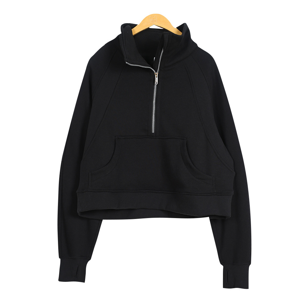 • 블랙 하프 풀 스탠드 칼라 스웨트셔츠
