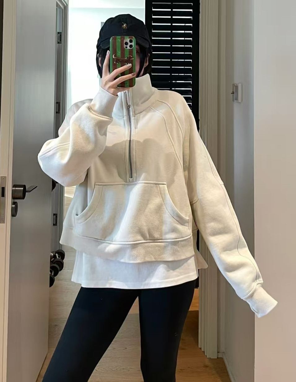 • 골드 라벨 본 화이트 하프 풀 스탠드 칼라 스웨트셔츠