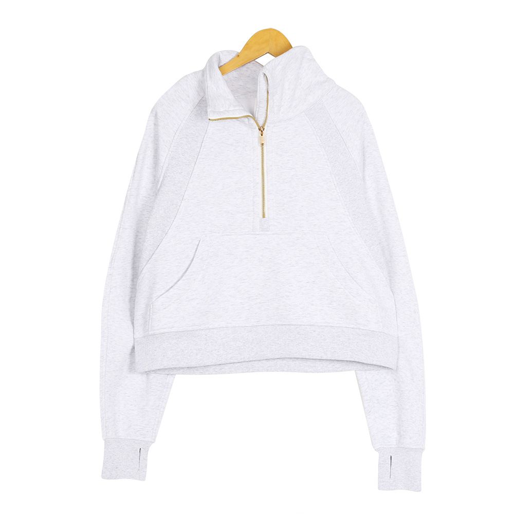 • 그레이 & 화이트 하프 풀 스탠드 칼라 스웨트셔츠